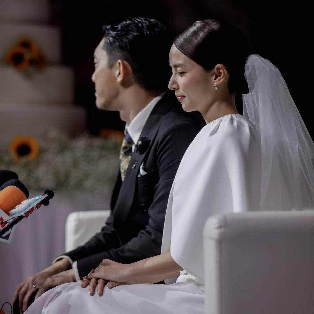 เมื่อถึงเวลาแถลงข่าว ก้อยก็มาพร้อมชุดสวยๆ จากแบรนด์เจ้าสาวของ ASAVA (WHITE ASAVA) ซึ่งดีไซเนอร์และผู้ก่อตั้งแบรนด์อย่าง "หมู - พลพัฒน์ อัศวะประภา" ก็เนรมิตชุดก็มาได้งดงามมากๆ