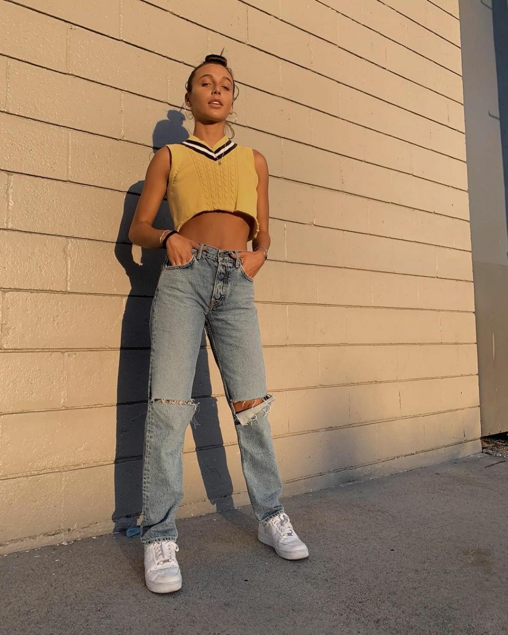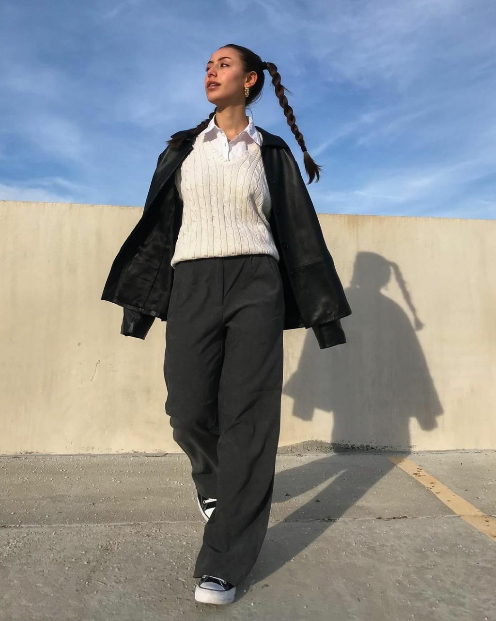 ลุคแรกแมตช์สไตล์นี้ง่ายที่สุด ไม่ต้องคิดเยอะ เพียงแค่หยิบเสื้อกั๊กที่มีมาแมตช์กับท่อนล่างที่เป็นยีนส์ค่ะ ไม่ว่าจะเป็นกระโปรง หรือกางเกงคุณจะได้ลุคเท่ๆ สุดคลาสสิกทันที ยัดเสื้อกั๊กไหมพรมเข้าในไปท่อนล่างสักหน่อย เพิ่มเข็มขัดอีกหนึ่งเส้น หรือจะใส่เป็นท่อนบนทรงครอปเอวลอยกับยีนส์ขาดนิดๆ สไตล์ลิ่งนี้ยังไงก็รอดค่ะ