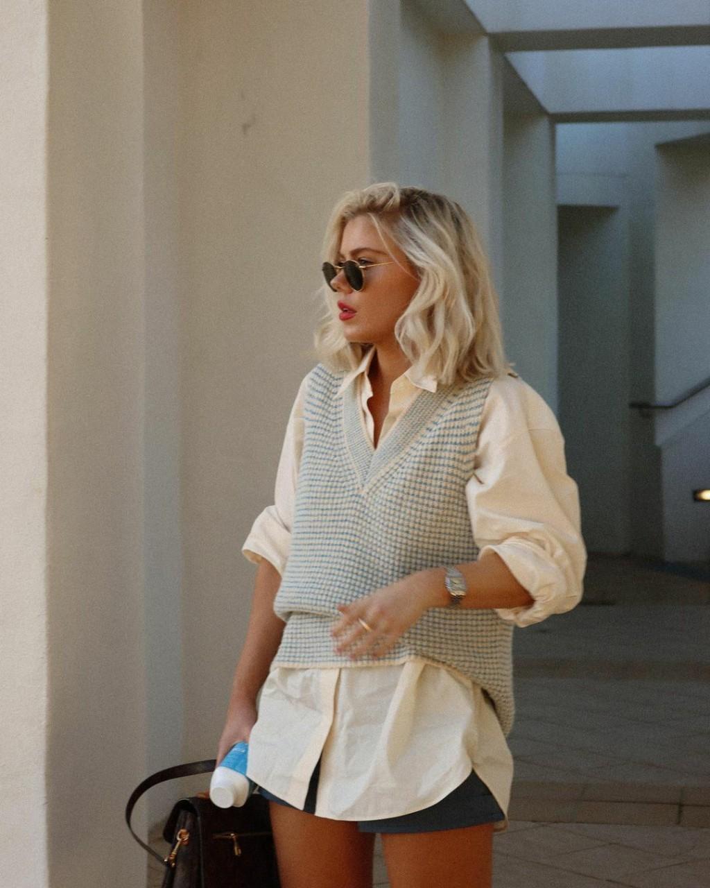 ถ้าใครมีเสื้อเชิ้ตสีขาวอยู่ในตู้เสื้อผ้าอยู่แล้ว จะหยิบมาใส่และสวมเสื้อกั๊กไหมพรมทับอีกหนึ่งเลเยอร์ก็เวิร์กเลยค่ะ อยากสนุกขึ้นมานิดก็ให้เลือกจับคู่เสื้อเชิ้ตสีสันกับเสื้อกั๊กสีสันเข้าไว้ด้วยกัน จะเป็นแบบไล่เฉดสี หรือคู่สีตรงข้ามก็ได้ ซึ่งการเพิ่มเลเยอร์ให้กับการแต่งตัวแบบนี้จะช่วยเปลี่ยนเสื้อเชิ้ตตัวเดิมของคุณให้มีสไตล์มากยิ่งขึ้นนั่นเอง