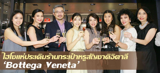 เรียกว่างานนี้เป็นที่สนใจของคนดังระดับประเทศจริงๆ เพราะมีไฮโซตบเท้าเข้าร่วมงานเปิดตัวช็อปใหม่ 'Bottega Veneta' อย่างคับคั่ง อาทิ ทิปปี้-สุพรทิพย์ ช่วงรังษี, ตือ-สมบัษร ถิระสาโรช, อุ้ย-สุทัศนีย์ ซอโสตถิกุล, แอน-อินทิรา ธนวิสุทธิ์, เล็ก-กรกนก ยงสกุล, เต้-บรม พิจารณ์จิตร, บุปผา กิ่งชัชวาล และอีกมากมายนับไม่ถ้วน ซึ่งทุกคนล้วนการันตีถึงคุณภาพของกระเป๋าแบรนด์หรูยี่ห้อนี้ว่ามันยอดเยี่ยม มอบนิยามความหรูหราให้กับหนุ่มๆ สาวๆ ที่ชื่นชอบแฟชั่นอย่างแท้จริง