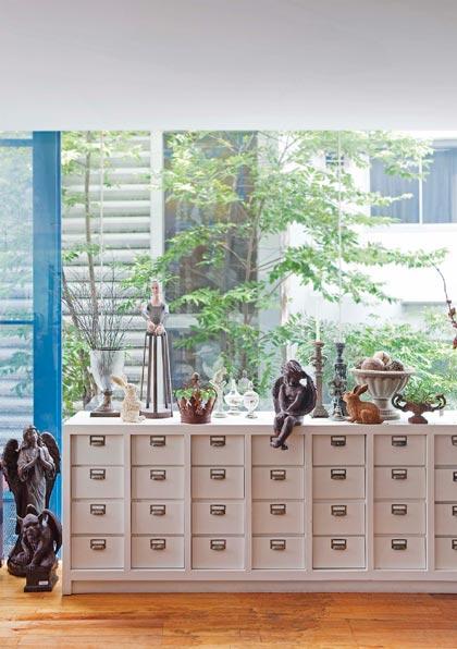 เทคนิคการจัดวาง เลือกใช้รูปปั้นที่มีความสูงลดหลั่นกัน นำมาตั้งให้มีระยะห่างกันเล็กน้อย ทั้งระยะหน้า กลาง และหลัง ช่วยให้มุมนี้ดูมีมิติ ตำแหน่งสำคัญอยู่ที่ด้านหลัง เราควรเลือกของชิ้นเล็กที่มีสีอ่อนใช้เป็นฉากกลืนไปกับผนังหรือวิวด้านหลัง อย่าลืมสร้างจุดเด่นด้วยการวางรูปปั้นหรือตุ๊กตาสูง 40 เซนติเมตร สัก 1 - 2 ชิ้น ไว้ที่มุมหนึ่งของตู้ เพื่อสร้างพระเอกและพระรองที่มีสัดส่วนพอเหมาะกัน แล้วตู้ใบนี้จะดูน่าสนใจมากยิ่งขึ้น