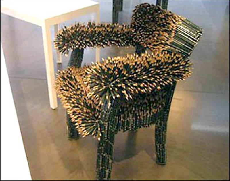 จะนั่งสบายหรือเปล่าไม่ขอการันตี แต่ที่แน่ๆ เห็นแล้วต้องนับถือในความพยายามของคนที่ออกแบบ เพราะกว่าจะนำดินสอแต่ละแท่งมาจัดระเบียบให้กลายเป็นเก้าอี้ได้คงใช้เวลานานน่าดู ใครที่ทำดินสอหายบ่อย หรือใช้ไม่เคยหมดแท่งก็เปลี่ยน ลองเอาไอเดียนี้ไปทำบ้างก็ได้