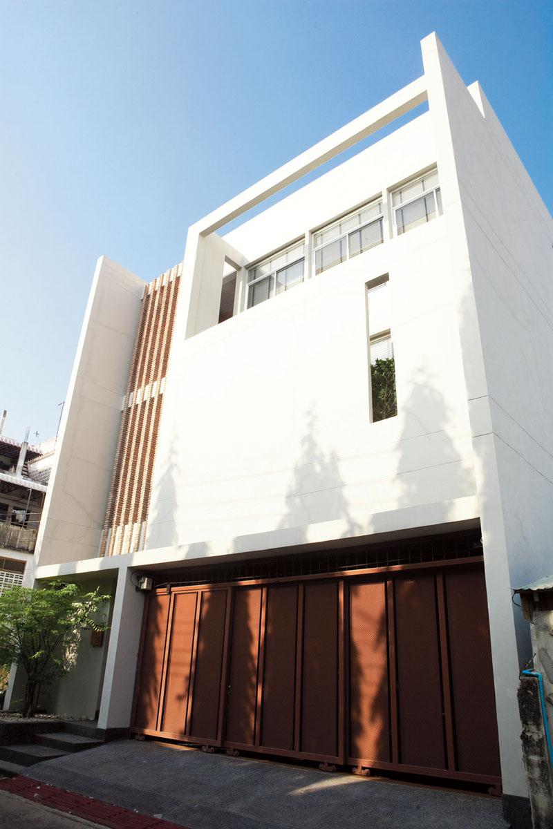 บานประตูเลื่อนสไลด์เหมาะกับประตูหน้าบ้านทาวน์เฮาส์มาก เพราะสามารถเลื่อนซ้อนกันเพื่อประหยัดพื้นที่ได้ ดังเช่นตัวอย่างของบ้านหลังนี้ เขาออกแบบบานเลื่อนให้มี 3 ตอน ใช้เหล็กเป็นโครงประตูแล้วเชื่อมด้วยแผ่นเหล็กทึบ แต่หากต้องการให้โปร่ง ก็สามารถแบ่งแผ่นเหล็กออกเป็นแผ่นย่อยๆ เว้นช่องว่างให้ห่างกัน หรือถ้าใช้แผ่นไม้ก็สามารถฉลุลวดลายต่างๆ ลงไปตามต้องการ ทั้งนี้ ควรติดให้อยู่ในตำแหน่งที่สูงสักหน่อยเพื่อความเป็นส่วนตัว
