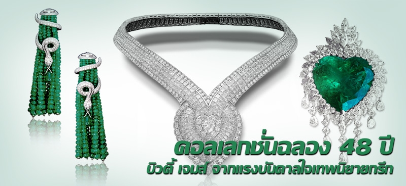 เดอะหนึ่ง-สุริยน กรรมการผู้จัดการบิวตี้ เจมส์ เผยว่า ถือเป็นโอกาสดีที่จะแนะนำคอลเลกชั่นพิเศษ “สปริง-ซัมเมอร์ 2012” ที่ออกแบบมาเพื่อโอกาสพิเศษนี้โดยเฉพาะ โดยได้แรงบันดาลใจจากเทพนิยายกรีกและโรมัน ซึ่งถ่ายทอดผ่านตัวตนของเทพเจ้าของชาวกรีก ออกมาเป็นเครื่องประดับที่หรูหรา โดดเด่น และมีเอกลักษณ์เฉพาะตัว ซึ่งมีทั้งสร้อยคอ ซีอูส (Zeus) เรียงร้อยด้วยเพชร ซึ่งเป็นตัวแทนของความบริสุทธิ์และแข็งแกร่งถึง 1,053 เม็ด น้ำหนัก 99 กะรัต, จี้มรกตรูปหัวใจ สะท้อนมุมมองความรักของกามเทพ อีรอส (Eros) หรือ Cupid บุตรแห่งเทพีความรัก, เครื่องประดับ ชุดเมดูซ่า (Medusa) ลูกสาวเทพแห่งท้องทะเล มีทั้งสร้อยคอและต่างหู โฉบเฉี่ยวด้วยการนำบีทสีเขียวคือมรกต 2,211 เม็ด หนัก 770 กะรัต มาเรียงร้อยกัน แล้วประดับด้วยเพชรรูปงู ซึ่งสื่อถึงพลังมหาศาล, เครื่องประดับชุด เพอร์เซโฟเร่ (Persephone) เทพีแห่งฤดูใบไม้ผลิ เป็นตัวแทนของความอุดมสมบูรณ์ จุดเด่นคือการนำทับทิมรูปหยดน้ำและหัวใจมาจัดวางเป็นสร้อยคอและต่างหู ซึ่งใช้ทับทิมถึง 58 เม็ด หนัก 111 กะรัต และเพชร 903 เม็ด หนัก 107 กะรัต.