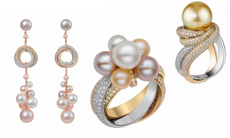 กับไข่มุกเม็ดงามรูปทรงสมบูรณ์แบบจากทะเลใต้ เพื่อสร้างสรรค์เป็นเครื่องประดับอัญมณีสุดโก้หรูตามแบบฉบับคาร์เทียร์ ทุกชิ้นงานดูนุ่มนวลอ่อนหวานและงามพิสุทธิ์ ดุจมวลหมู่ดอกไม้ที่กำลังบานสะพรั่ง สอดรับกับประกายแสงแวววับของเกลียวแหวนที่คล้องเชื่อมโยงกันอย่างไม่มีที่สิ้นสุด