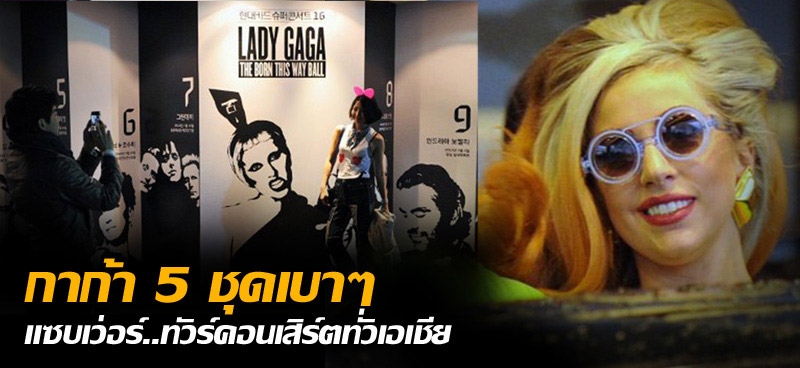 ใกล้เข้ามาทุกทีแล้วสำหรับคอนเสิร์ตใหญ่ของนักร้องสาว เลดี้ กาก้า ซึ่งจากการทัวร์คอนเสิร์ตทั่วเอเชียทั้งเกาหลี ญี่ปุ่น ไต้หวัน และฮ่องกง ที่ผ่านมาลีลาการแต่งตัวของสาวคนนี้ก็ยังไม่มีทีท่าว่าจะดรอป วันนี้เลยรวบรวมมาให้ดูก่อน 5 ชุดที่สาวคนนี้ใส่ แม้จะไม่ใช่วินาทีที่กำลังเล่นคอนเสิร์ตอยู่ก็ตาม