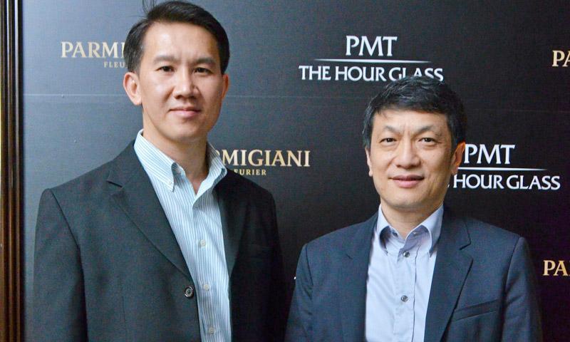 ในเมื่อโลกแห่งกาลเวลาไม่เคยหยุดนิ่งที่จะคิดค้นนวัตกรรมใหม่ๆ ผู้บริหารหนุ่มจากพีเอ็มที เดอะ อาวร์ กลาส “ณรัณ ธรรมาวรานุคุปต์” จึงขยันสรรหาเครื่องบอกเวลากลไกชั้นสูงมาให้คนรักนาฬิกาได้ชื่นชม ล่าสุดได้จัดงานไพรเวทดินเนอร์ ที่โรงแรมเซ็นต์ รีจีส เปิดตัวแบรนด์นาฬิการะดับโลกจากประเทศสวิตเซอร์แลนด์ “พาร์มิเจียนี่” (Parmigiani) ที่พีเอ็มทีได้รับแต่งตั้งเป็นตัวแทนจำหน่ายอย่างเป็นทางการ แต่เพียงผู้เดียวในประเทศไทย พร้อมอวดโฉมนาฬิกาเรือนเด่น อาทิ รุ่น “ทอริค ทูร์บิญอง โครโนกราฟ สเกเลตัน” ตัวเรือนทำจากวัสดุล้ำค่าอย่างโรสโกลด์ กลไลไขลานทูร์บิญองโครโนกราฟ หน้าปัดเปลือยอวดการทำงานผ่านชิ้นส่วนกลไกต่างๆ ตามแบบงานศิลป์ชั้นสูง มีเพียง 10 เรือนทั่วโลก ราคา 17,789,000 บาท และอีกหนึ่งคอลเลกชั่นเด่น รุ่น “คาลปา เอ็กซ์แอล มินิธ รีพีทเตอร์” โดดเด่นด้วยกลไกบอกเวลาผ่านระบบ มินิธ รีพีทเตอร์ ควบคุมการตีบอกเวลาทุกชั่วโมง ทุก 15 นาที และทุกนาที มาพร้อมสายหนังอัลลิเกเตอร์จาก Hermes เพียง 10 เรือน ราคา 16,876,000 บาท