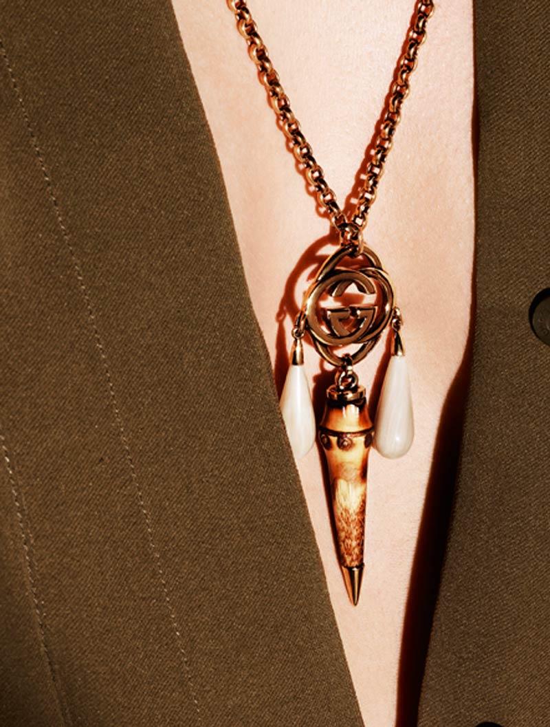 ด้วยฝีมือทางหัตถศิลป์ชั้นสูง สะท้อนให้เห็นถึงประวัติศาสตร์อันยาวนานของแบรนด์กุชชี่ เริ่มต้นด้วย กระเป๋ารุ่น Stirrup กับรูปทรงที่นุ่มนวลขึ้น อะไหล่รูปม้าจากคอลเลกชั่น Archive ถูกนำมาประดับตกแต่งกระเป๋าคลัตช์ และกระเป๋าสะพายบ่า เพิ่มความเก๋ให้กระเป๋าด้วยหนังหุ้มหูจับไม้ไผ่ กางเกงขายาวสอดเข้าไปในรองเท้าบูต รองเท้าประดับหมุดสีทอง และรองเท้าหนังมอคคาซินประดับพู่ ถุงมือหนัง และแว่นกันแดดทรง Aviator