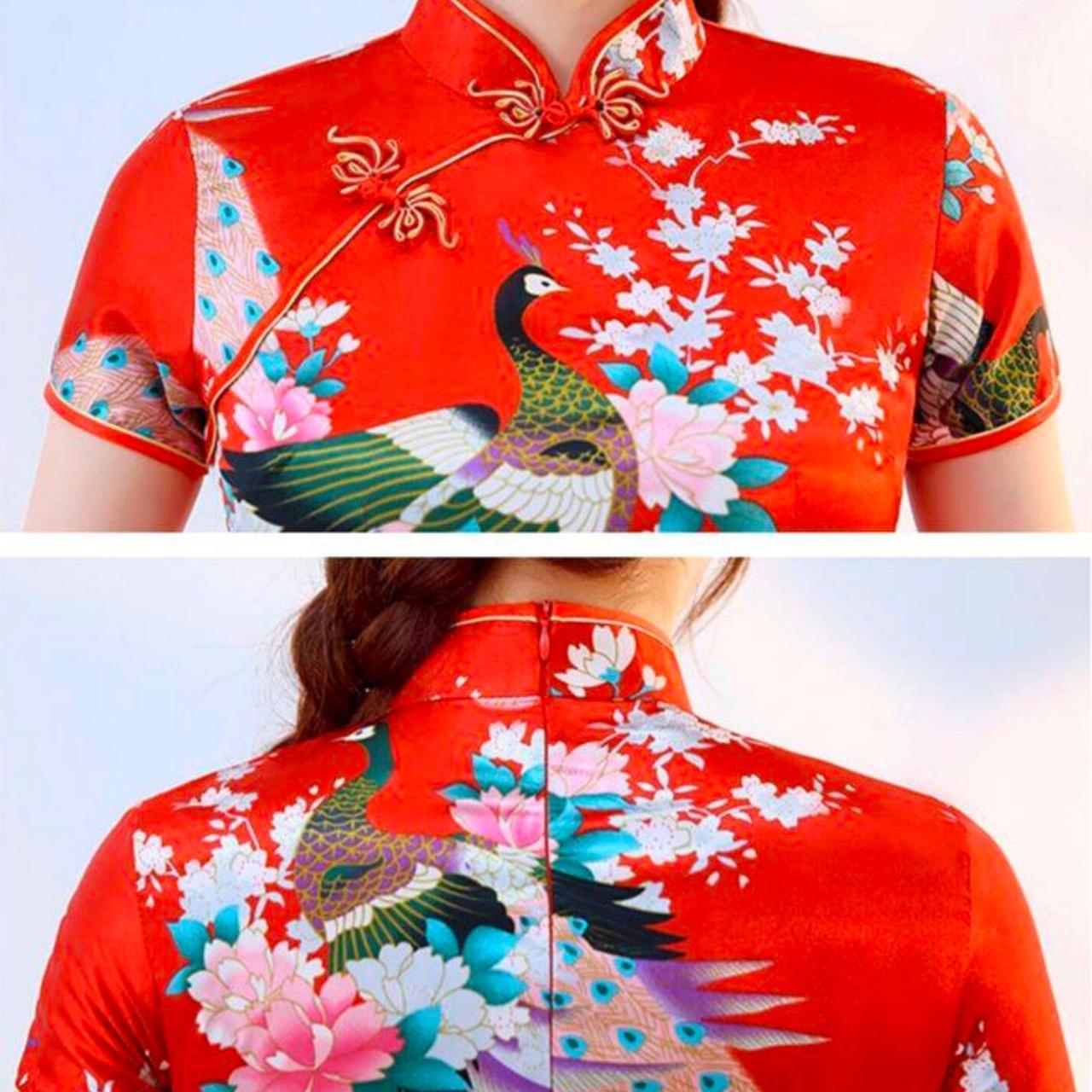 ชุดกี่เพ้าวินเทจสีแดง ลายนกยูง จากร้าน CYD SHOP ชุดเดรสสั้นความยาวเหนือเข่า ดีเทลพิมพ์ลายนกยูง อันหมายถึงความงดงาม ความรัก ความสุข และความมั่งคั่ง มีให้เลือก 3 สี สีแดง สีชมพู และสีกุหลาบ ขนาดไซส์ตั้งแต่ S - 6XL ราคา 155 บาท ดูรายละเอียดสินค้าได้ที่ Lazada