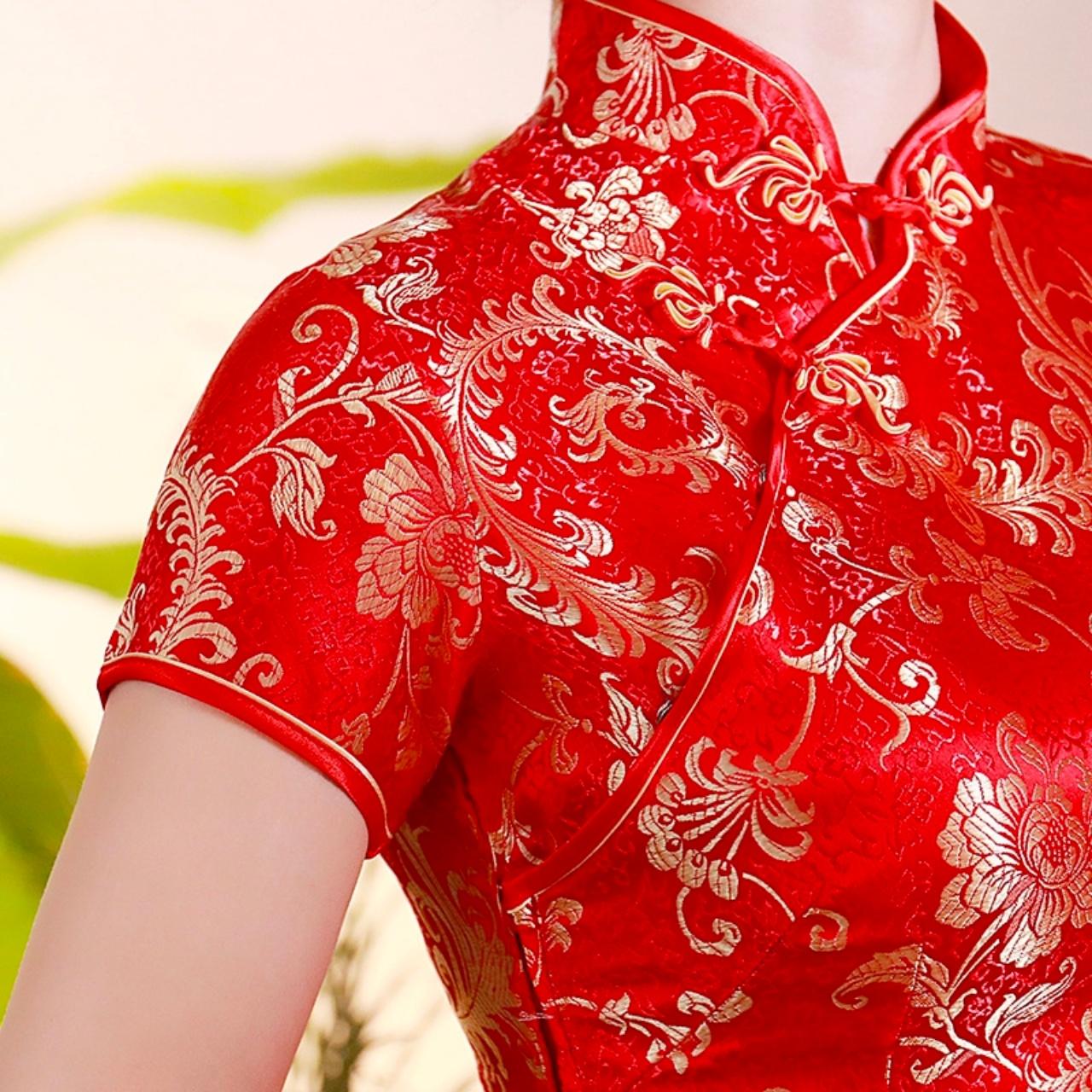 ชุดกี่เพ้าลายดอกไม้มงคล จากร้าน Commodity City in Thailand ผ้าซาตินมันเงาใส่สบายไม่ร้อน เป็นชุดเดรสสั้น ทรงเข้ารูป มี 6 ไซส์ให้เลือก ตั้งแต่ S-3XL ความยาวชุด 85- 94 เซนติเมตร ดีเทลปักลายดอกไม้สีทอง ผ่าด้านข้าง ให้สาวๆ เดินและเคลื่อนไหวได้สะดวก ราคา 185 บาท ดูรายละเอียดสินค้าได้ที่ Shopee