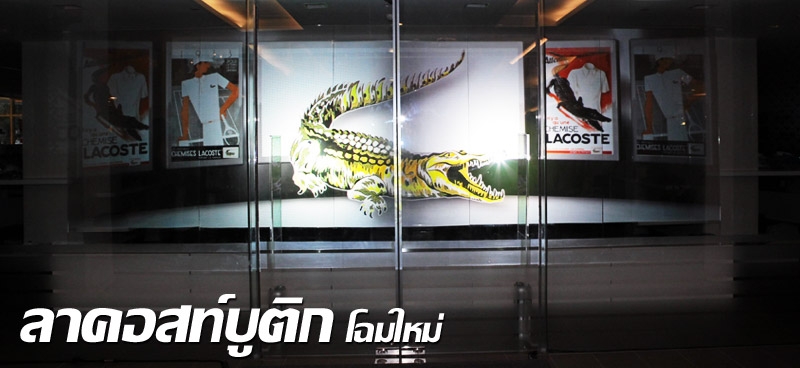 ทุ่มทุนสร้างปรับภาพลักษณ์ใหม่ทั้งที Lacoste Boutique โฉมใหม่บนพื้นที่เดิม ชั้น 2 ศูนย์การค้าเซ็นทรัลเวิลด์ จึงโก้หรูมีสไตล์ไม่ซ้ำใคร โดยยังคงแฝงไว้ซึ่งเอกลักษณ์ความเป็นลาคอสท์ ที่สร้างชื่อก้องโลกมาตลอดเวลาเกือบ 8 ทศวรรษ ภายในบูติกถูกออกแบบด้วยคอนเซปต์ “อะโกรา” ในรูปแบบเดียวกับบูติกลาคอสท์ ย่านฌองเซลิเซ่ ศูนย์กลางช็อปปิ้งแบรนด์เนมของกรุงปารีส ประเทศฝรั่งเศส และถนนฟิฟท์ อเวนิว ย่านช็อปปิ้งระดับไฮเอนด์ของมหานครนิวยอร์ก สหรัฐอเมริกา