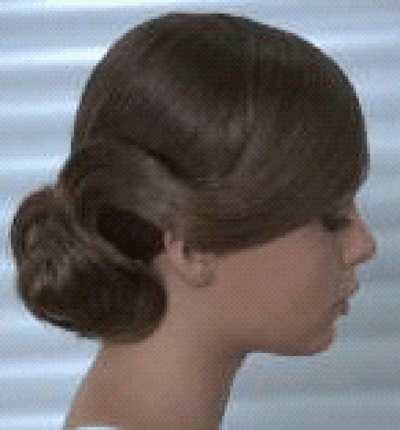 7. จัดแต่งผมด้านหน้าให้เป็นลอน และเก็บปลายผมด้านหน้าซ่อนในมวย สเปร์ย ซุปเปอร์ เซต ฟินิชฟินิชชิ่งสเปรย์ ทั่วทั้งทรงผม
