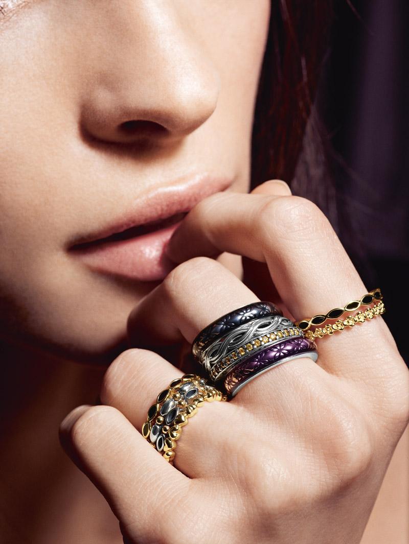 คอลเลกชั่นใหม่ของแหวน Pandora รวมเอาสัญลักษณ์ความเป็นผู้หญิงและการรวมตัวความเป็นไปได้อื่นๆ เหลือคณานับ ด้วยแหวนแบบสีทองและเงิน ความโค้งตัวเรือนรูปไข่เคลือบด้วยน้ำยาสีดำ ช่วยเพิ่มความโดดเด่นแบบคลาสสิก แหวนแบบเงินเนื้อเกือบบริสุทธิ์ ตัวเรือนตกแต่งด้วยลวดลายดอกไม้ และการเลือกใช้โทนสีขุ่นช่วยเพิ่มความหรูหราในแบบฉบับผู้หญิง แม้ว่าจะเลือกสวมใส่แหวนเพียงหนึ่งวงหรือทั้งเซต
