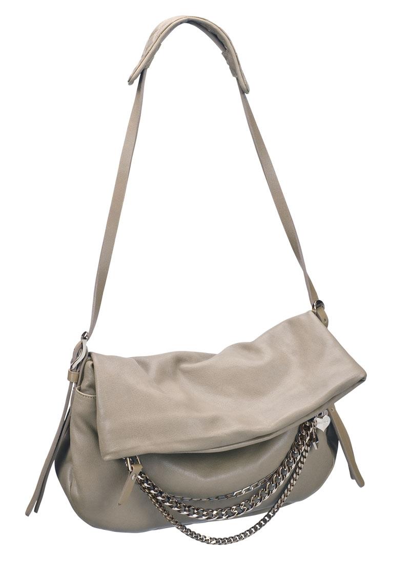 กระเป๋าหนังพับหลากรูปแบบการใช้สอย แสดงถึงความเป็นอิสตรีเพศ แฝงด้วยความทันสมัย เหมาะทั้งสำหรับใช้งานกลางวัน และกลางคืน ใช้งานได้หลากหลาย สามารถสะพายคาดตัว สะพายไหล่หรือใช้เป็นกระเป๋าถือก็ได้เช่นกัน กระเป๋าหนังพับในรูปแบบที่โฉบเฉี่ยวประกอบด้วยส่วนภายใน 1 ส่วนหลักพร้อมกระเป๋าซิปนิรภัย กระเป๋าเล็กอยู่ภายนอกของส่วนกระเป๋าหลัก ใช้งานสะดวกพร้อมด้วยซิปนิรภัยสายโซ่ยาว สามารถปรับได้ตามลักษณะการใช้งาน พร้อมด้วยลายละเอียดการประดับกระเป๋าตามเอกลักษณ์ของกระเป๋าไบเกอร์ แบค ได้แก่ สายโซ่ ซิปและสัญลักษณ์รับประกัน JIMMY CHOO ผลิตจาก กระเป๋าบุภายในด้วยวัสดุไมโครไฟเบอร์ อัลคันทารา สีทราย