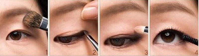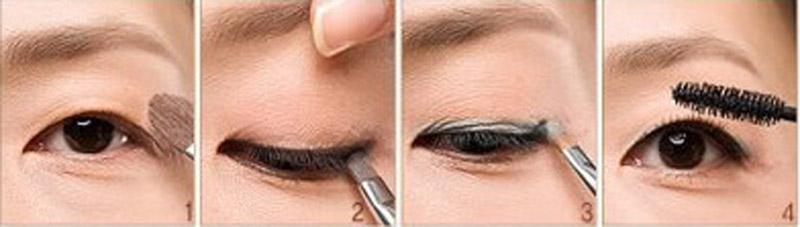 ทำศัลยกรรม ส่วนใหญ่แล้วคนญี่ปุ่นเน้นทำตาสองชั้นเป็นหลัก แต่สำหรับคนที่ไม่ทำศัลยกรรมจะมีการแต่งดวงตาให้ดูคมชัดขึ้นและเป็นธรรมชาติ โดยเลือกสีอาย แชโดว์ที่มีชิมเมอร์แวววาวให้เข้ากับสีผิว หรือสีขนตา และควรใช้ประมาณ 3 สี แต่ควรเน้นไปในทางสีน้ำตาล เพราะจะดูเป็นธรรมชาติที่สุดโดยทาไล่ตามเฉดโทนอ่อนที่สุดไปจนถึงเข้มที่สุด และลงสีที่หนึ่งที่เป็นโทนสีอ่อนสุดบริเวณเปลือกตา ทาสีที่สองลงตรงบริเวณจุดกึ่งกลางของตา และเกลี่ยขึ้นข้างบน แล้วไล่สีที่สามจากหางตามาถึงบริเวณกึ่งกลางตาแล้วเกลี่ยขึ้น ลงสีที่เข้มที่สุดตามแนวชิดขอบตาอีกครั้ง และเกลี่ยให้เรียบเนียน จากนั้นให้ปัดมาสคาร่า “เดจาวู ไฟเบอร์วิก เอ็กซ์ตร้าลอง” มาสคาร่าเพื่อเพิ่ม “ความยาว” สูตรไฟเบอร์สีน้ำตาลเพื่อให้ขนตายาวขึ้นอย่างเป็นธรรมชาติราวกับขนตาจริง โดยไม่ต้องพึ่งขนตาปลอม