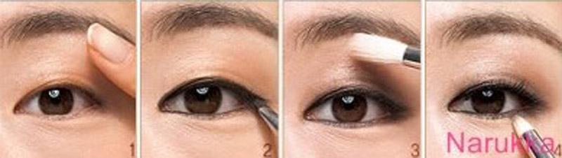 เริ่มต้นจากการเขียนคิ้วให้เรียวได้รูปเหมาะกับใบหน้า โดยใช้สีน้ำตาลเข้มและปัดคิ้วด้วยสีเดียวกัน หรืออาจใช้เจลใสจัดแต่งให้คิ้วสวยได้รูป ใครที่อยากมีคิ้วสวยได้รูป ลองไปให้ผู้เชี่ยวชาญที่สถาบันจัดแต่งคิ้วชั้นนำอย่าง อนาสตาเซีย (Anastasia) แนะนำและให้บริการดูได้ คนญี่ปุ่นเวลาแต่งหน้าจะเน้นที่ “ดวงตา” เป็นหลัก อาจเป็นเพราะว่าคนญี่ปุ่นมีจุดอ่อนที่ตา หมายถึง ตาเล็กและมีชั้นเดียว สามารถสังเกตได้จากการที่คนญี่ปุ่น