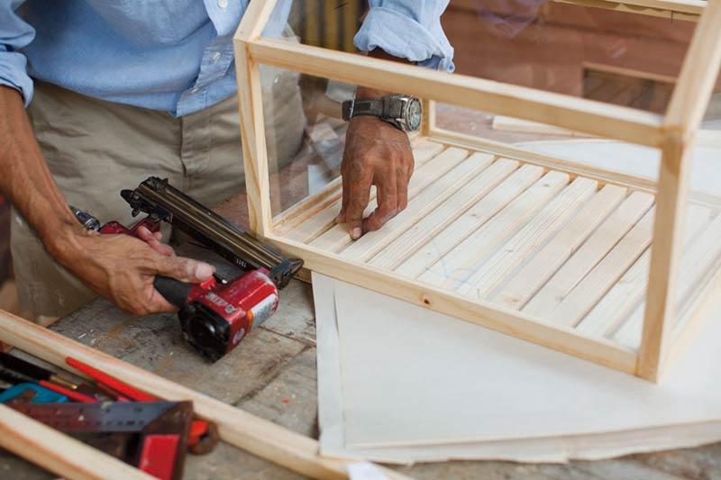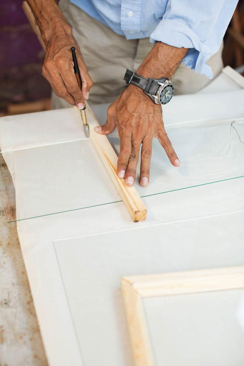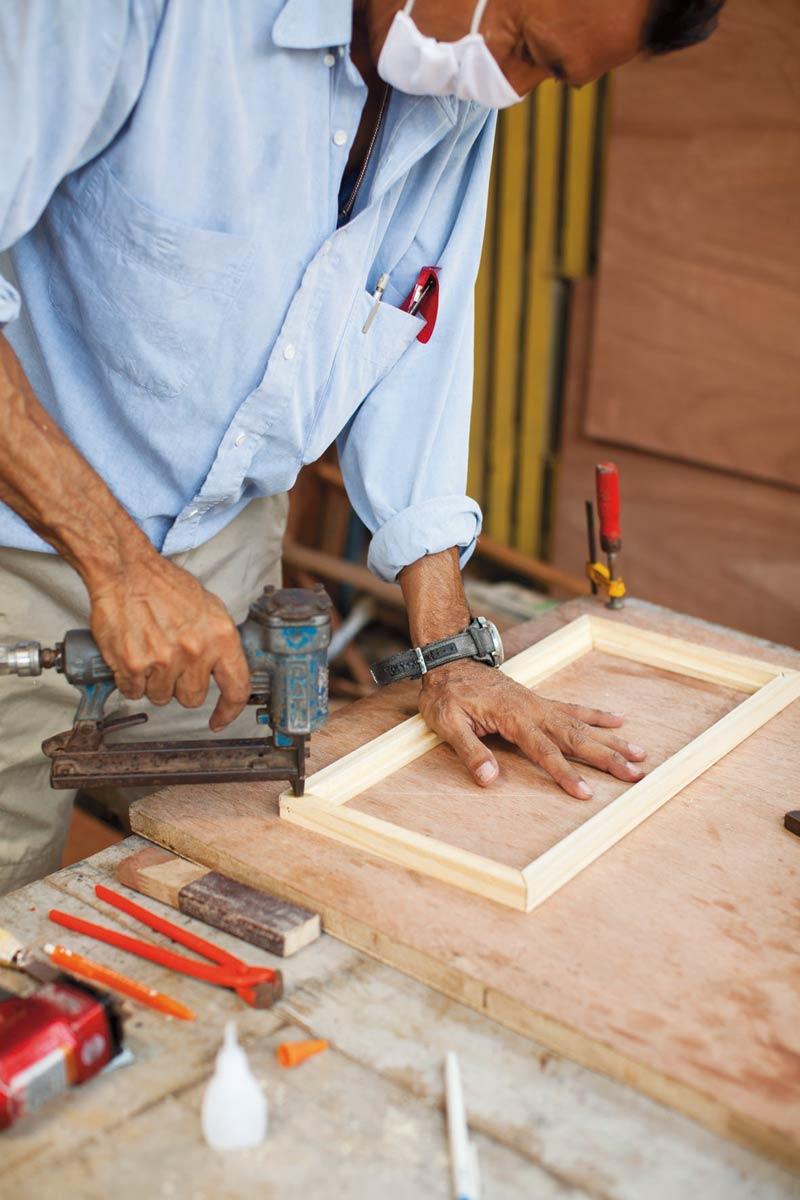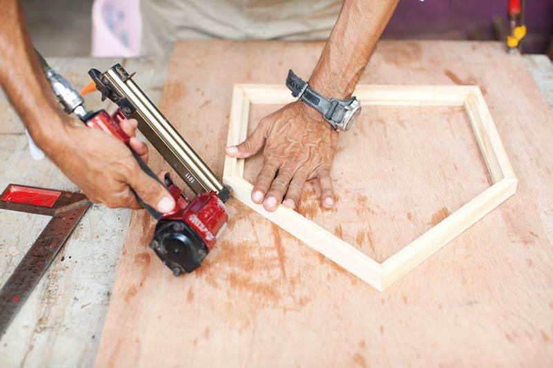 เมื่อตัดไม้ได้ตามขนาดที่กำหนดแล้ว นำมาเซาะร่องเพื่อติดกระจก โดยใช้เครื่องเซาะร่องไม้ (Router)