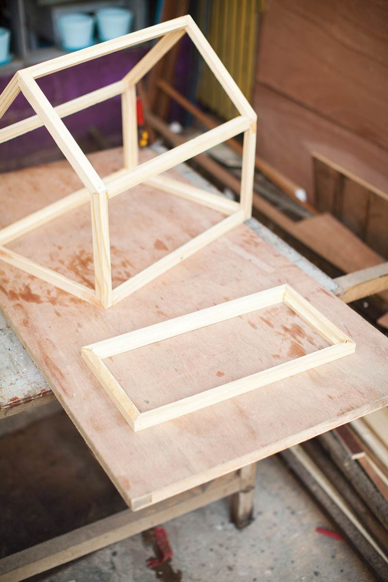 จากนั้นก็ลงมือสร้างบ้านกันเลย ลักษณะจะเหมือนเป็นเฟรมบ้านขนาดเล็ก