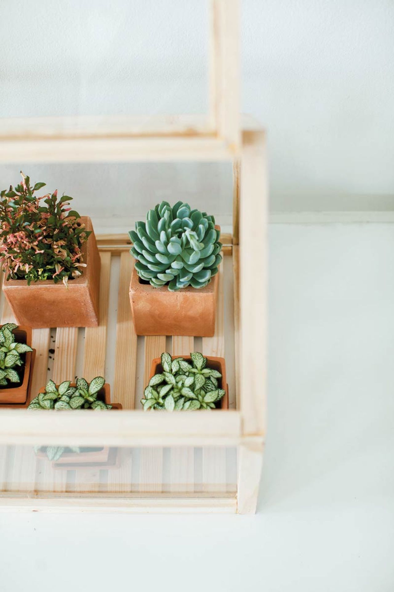 ในกรณีที่วางในบ้านนั้น เราสามารถวาง mini greenhouse ไว้ส่วนใดของมุมบ้านก็ได้ที่มีแดดส่องถึง เป็นบริเวณที่มีลมพัดผ่าน อย่างเช่นริมหน้าต่างห้องนั่งเล่น เลือกปลูกเป็นพืชที่ต้องการแดดสักครึ่งวัน ส่วนกรณีวางอยู่ภายนอกบ้าน ที่ๆ ดูจะเหมาะสมควรเป็นนอกชานบ้าน หรือระเบียงห้องนอน เป็นพื้นที่เอาต์ดอร์ที่เราได้ใกล้ชิดและมองเห็นบ่อย หากวางในที่แสงแดดส่องเกินครึ่งวัน เลือกปลูกไม้ประเภท แคคตัส หรือซัคคิวเลนท์ ก็ดูเข้ากันได้ดีกับเรือนกระจกใบน้อยหลังนี้ ส่วนใครจะนำไปวางที่ออฟฟิศก็สามารถทำได้เช่นกัน เพียงแต่ว่าควรยกออกมาสัมผัสอากาศนอกห้องบ้าง เพราะภายในอาคารที่ติดเครื่องปรับอากาศ สภาวะความชื้นจะต่ำ อาจทำให้ต้นไม้ของเราไม่สวยงามเท่าที่ควร
