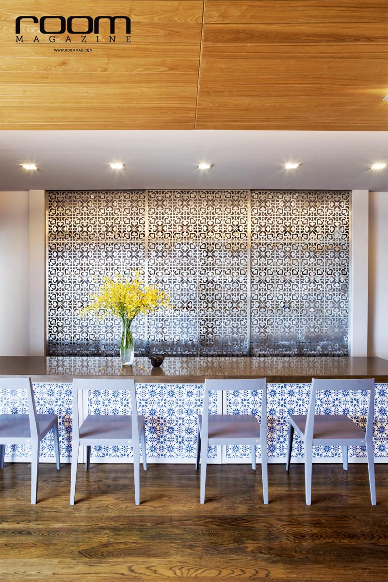 อีกหนึ่งไอเดียที่อยากแนะนำในการทำบานเลื่อนตู้โชว์หรือชั้นวางของต่าง ๆ จากสแตนเลส ซึ่งสามารถนำมาใช้เพิ่มความหรูหราและสร้างสไตล์ให้บ้านได้ โดยทำบานปิด-เปิดชั้นวางของหลังแพนทรี ขนาดกว้าง 3 เมตร สูง 3 เมตร เป็นบานเลื่อนสไลด์ 3 บาน ขนาดบานละ 1 เมตร เพิ่มลูกเล่นด้วยการฉลุลายแผ่นสแตนเลสลายดอกไม้ เข้ากับกระเบื้องที่ติดอยู่บริเวณด้านหน้าแพนทรี เป็นการผสมผสานระหว่างความทันสมัยและความคลาสสิกได้อย่างลงตัวดีทีเดียว