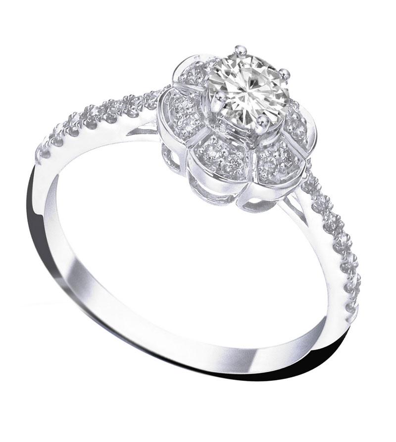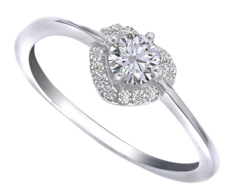 แหวนเพชรดีไซน์รูปหัวใจ โดดเด่นด้วยเพชรน้ำงามเม็ดกลางที่รายล้อมด้วยเพชรระยิบระยับอีก 11 เม็ด ดุจความรักที่ถูกทะนุถนอมเป็นอย่างดี