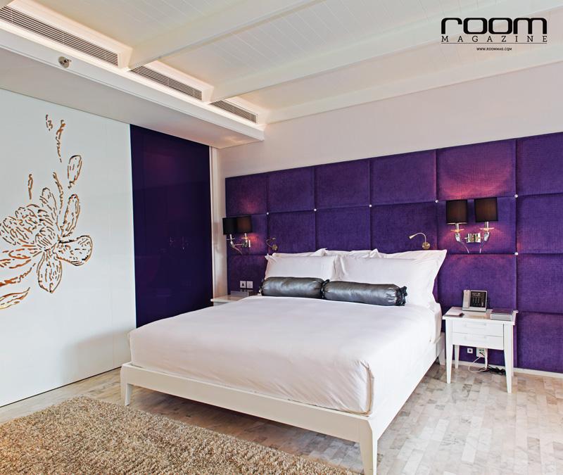 ใครบอกว่าสีโมโนโทนจะสร้างความน่าสนใจไม่ได้ เราขอชวนคุณมาแปลงโฉมห้องนอนสีขาวสะอาดตาสไตล์ร่วมสมัยให้สวยชิคสุดใจด้วยการเติมสีสันสุดเปรี้ยวเพียง 1 สี ลงไปเท่านั้น เริ่มจากลองเลือกใช้สีม่วงเข้มในตำแหน่งที่สะดุดตาอย่างผนังหัวเตียง โดยอาจเลือกใช้วัสดุอื่นๆ มาช่วยเติมผิวสัมผัสให้บริเวณนี้มีเท็กซ์เจอร์แตกต่างกันออกไป เช่น การบุผ้าสีม่วงเข้มเป็นช่องตาราง ปักหมุดคริสตัล หรือการใช้ความแวววาวของผนังกระจกสีม่วงมาช่วยให้ห้องมีมิติ อีกทั้งห้องโทนสีขาวยังช่วยขับให้สีม่วงดูโดดเด่นขึ้นอย่างใจ เน้นย้ำความหรูหราอีกนิดด้วยปลอกหมอนสีเงินแวววาว พรมผืนหนานุ่ม พื้นหินอ่อน หรือผนังฉลุลายละเอียดอ่อน เติมความอ่อนโยนให้ห้องดูไม่ทึบจนเกินไป