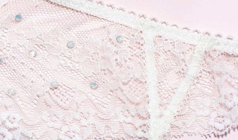 รายละเอียดการใช้ลูกไม้สีขาว Leaver Lace ซึ่งเป็นเทคนิคการทอแบบโบราณ ซึ่งหาชมได้ยากในปัจจุบัน นำมาผสมผสานกับการตัดต่อแทรกลูกไม้ขอบหยักเหมือนกับลายของเปลือกหอยใต้ทะเล รวมไปถึงการรีดเม็ดคริสตัลชวารอฟสกีด้วยเทคนิคฮ็อตฟิกด์ (Hot Fixed) ลงบนเนื้อผ้าซาตินนุ่ม สวมใส่สบาย พร้อมมอบรูปลักษณ์ที่สวยงามยั่วยวนใจไปพร้อมๆ กัน