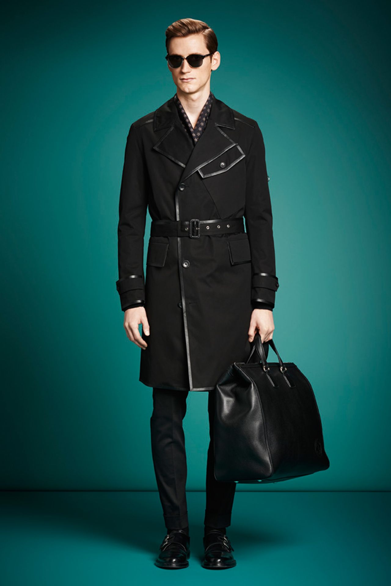 รวบรวมทุกชิ้นสำคัญสำหรับสไตล์แบบไฮสปีด กระเป๋าหนังทรง Duffle, กระเป๋าโท้ท (tote), กระเป๋าสะพายหลัง, และกระเป๋าเอกสาร ทุกใบมีลายตัวอักษรจีจี (GG) ไขว้กัน รองเท้าแบบมีสายรัดด้านบน (monk strap shoe) มาเป็นตัวชูโรงสำหรับทั้งลุคกลางวันและกลางคืน รองเท้าบูตหนังมันเงามีทั้งแบบผูกเชือกและแบบหุ้มข้อ แว่นตากันแดดกรอบลายกระดองเต่าย้อนรำลึกไปสู่ยุค ‘50s นาฬิกา กุชชี่ คูเป้ (Gucci Coupé) แบบโครโนสปอร์ตโดดเด่นด้วยหน้าปัดสีฟ้า การตกแต่งรายละเอียดจะเป็นไปในทางเดียวกันกับผ้าพันคอผ้าไหมพิมพ์ลาย เท่านี้ก็พร้อมแล้วที่จะเข้าเกียร์และตะลุยไปบนท้องถนน