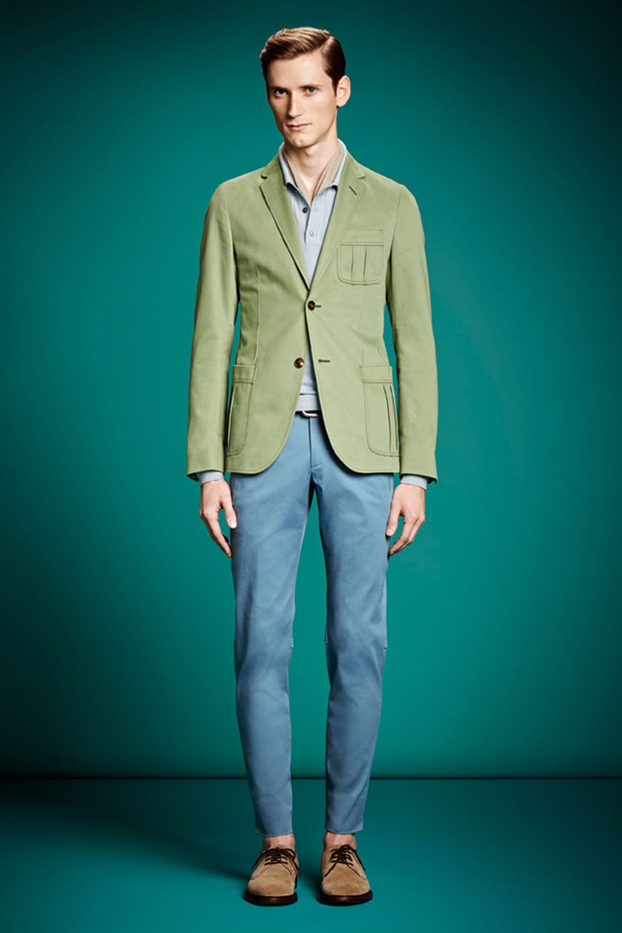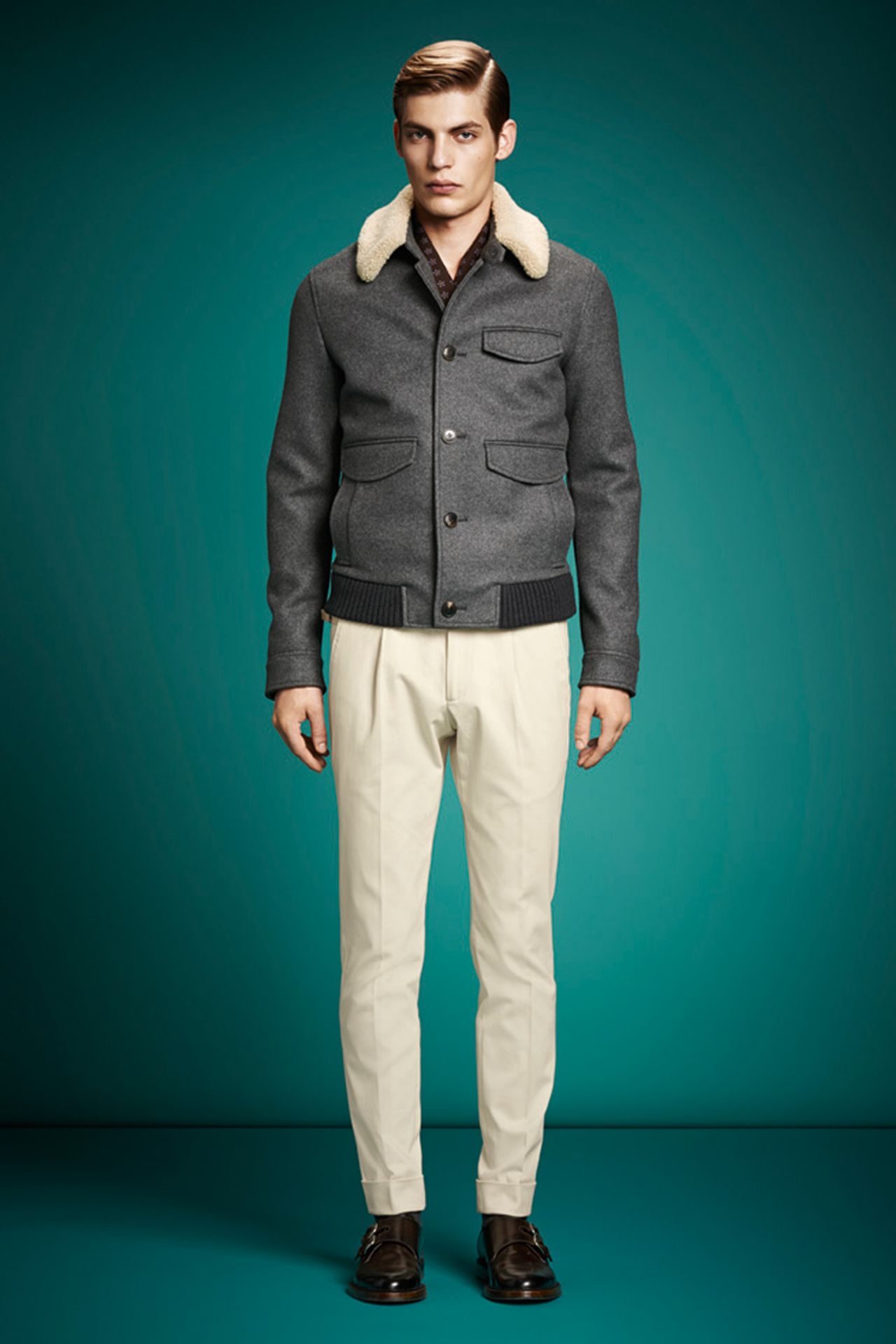 ความงดงามที่ปลุกเร้ายุค ‘50s ผ่านทางชุดสูทที่มาพร้อมกับแจ็กเกตกระดุม 2 เม็ด และกางเกงขายาวทรงกระสอบพับขา เสื้อโปโลถักนิตถูกนำมาใส่แทนเสื้อเชิ้ต เบลเซอร์และกางเกงทรงขี่ม้าที่มาพร้อมกับรอยเย็บตะเข็บที่ทำให้นึกถึงอานม้า เสื้อผ้าตัวนอกมีทั้งบอมเบอร์ (bombers) แจ็กเกต ผ้าไนลอนพิมพ์ลายประดับตกแต่งด้วยกระเป๋าเสื้ออันหลากหลาย ไบค์เกอร์ (biker) แจ็กเกตหนังแกะสุดนุ่มตัดต่อแขนเสื้อที่ทำด้วยผ้าถักนิต, เสื้อโค้ทที่ปกคอเสื้อทำจากผ้ากำมะหยี่, เสื้อพีโค้ทลายตารางหมากรุก และ โค้ทกันฝน ถุงมือสำหรับใส่ขับรถ และแนวหลักของคอลเลกชั่นนี้ ผ้าพันคอชายลายจุดโพลกาดอทขนาดเล็ก พาเล็ตสีน้ำที่มีทั้ง สีฟ้าอ่อน (sky blue), สีเขียว (sage), สีขาว (ice) และสีกากีอ่อน ที่มาพร้อมกับลูกเล่นการไล่สีซีด สีสันต่างๆ เข้มข้นขึ้นด้วยสีม่วง (bordeaux) และสีเขียว (bottle green)