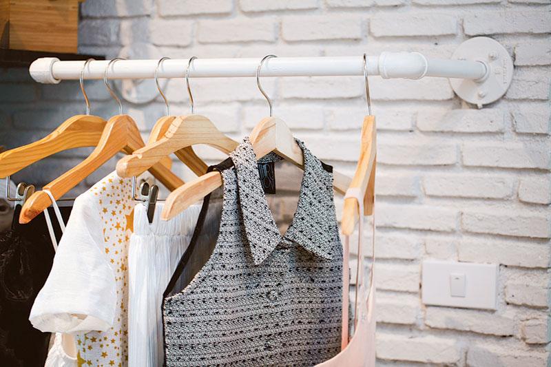ราวแขวนเสื้อเท่ๆ จากท่อเหล็กตัดกับเสื้อผ้าในสไตล์หวานๆ