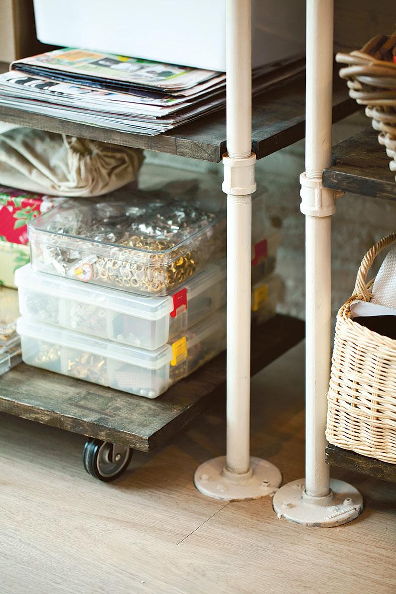ชั้นวางของติดล้อเลื่อน ทำให้เลื่อนชุดอุปกรณ์การตัดเย็บออกมาใช้งานได้อย่างคล่องตัว