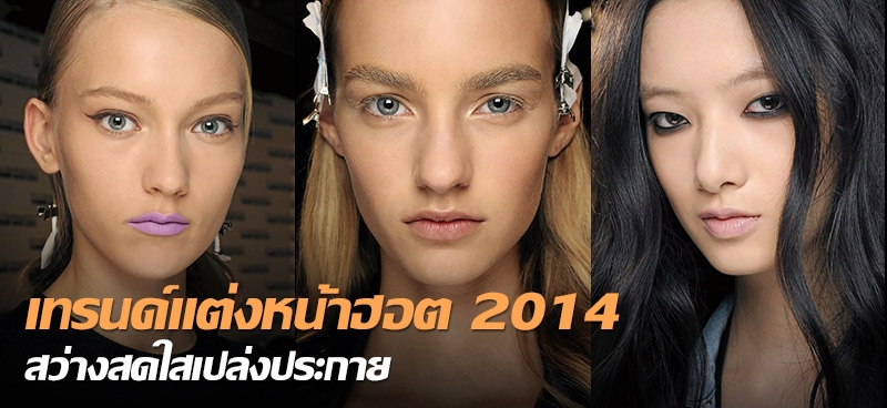 เก็บปัญหาความวุ่นวายของบ้านเมือง และเศรษฐกิจโลกที่แสนซบเซาเอาไว้ก่อน แล้วหันมาเพิ่มออร่าให้เปล่งประกายเจิดจ้าเอาฤกษ์เอาชัยเพื่อต้อนรับปีม้าสุดคึกคัก กับเทรนด์แต่งหน้าร้อนๆ จาก 5 เครื่องสำอางแบรนด์ดังทรงอิทธิพลของโลกความงาม ที่พร้อมใจกันสร้างสรรค์คีย์ลุคเด่นสำหรับปี 2014 เพื่อให้สาวๆ ได้อัพเดทล่วงหน้าก่อนใคร