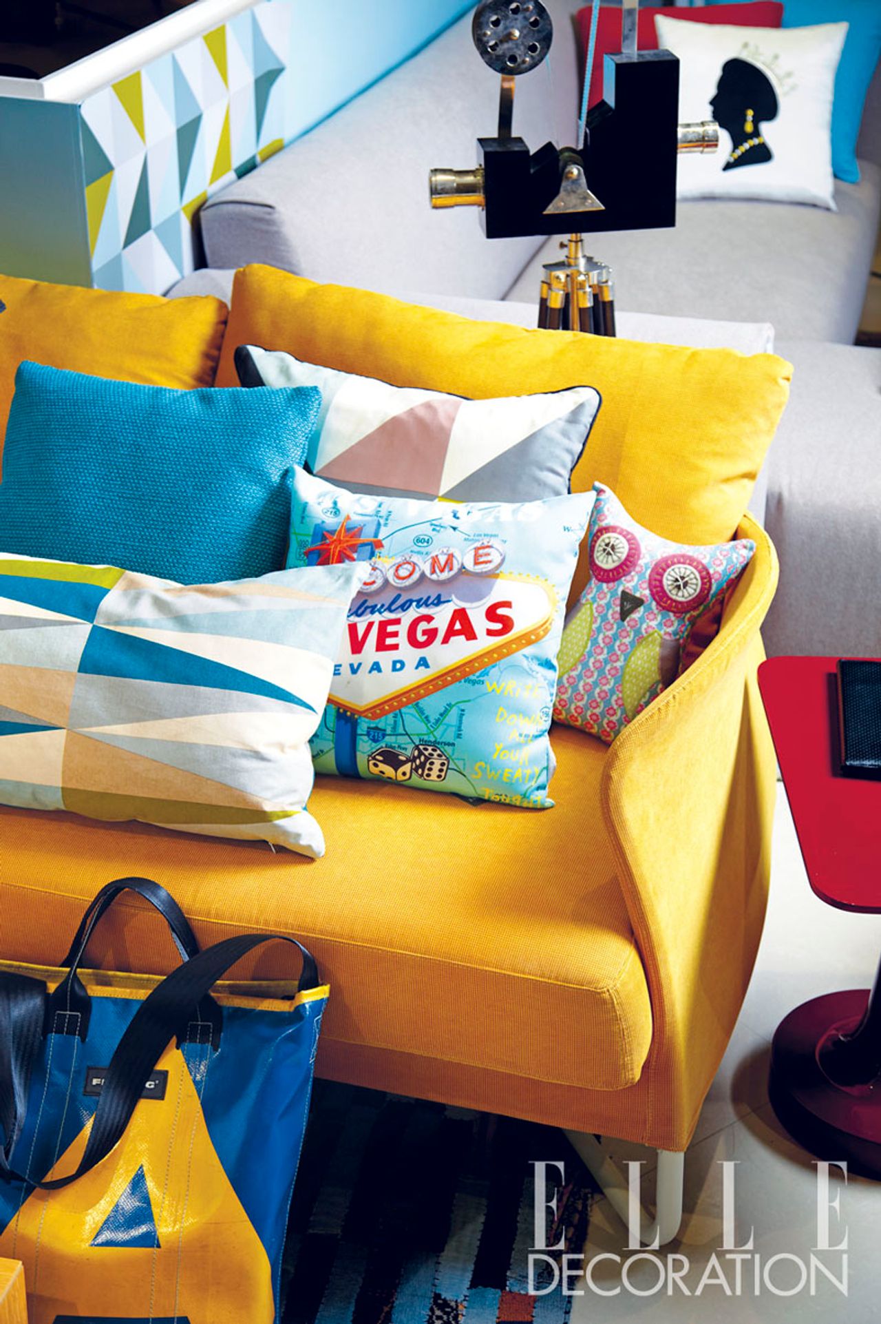 วิธีง่ายที่สุดวิธีหนึ่งที่ช่วยสร้างบรรยากาศแบบ Global Style คือ การวางหมอนอิงลวดลายผ้าทอมือจากนานาชาติจำนวนมากบนโซฟาตัวยาวสีเรียบ แล้วหาแจกันงานฝีมือช่างท้องถิ่นมาปักดอกไม้ตั้งไว้บนโต๊ะกลางห้อง