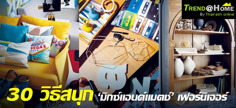 เฟอร์นิเจอร์และข้าวของเครื่องใช้ที่แตกต่างกัน สามารถนำมาจัดวางผสมผสานร่วมกันได้อย่างลงตัว ทั้งจากต่างยุค ต่างที่มา ต่างวัสดุ และต่างสไตล์ ขอนำเสนอ 30 วิธีสนุกๆ ในการมิกซ์แอนด์แมตช์เฟอร์นิเจอร์ ที่มีความหลากหลาย และเปลี่ยนแปลงไปตามยุคสมัยให้มาผสมผสานกันอย่างลงตัว