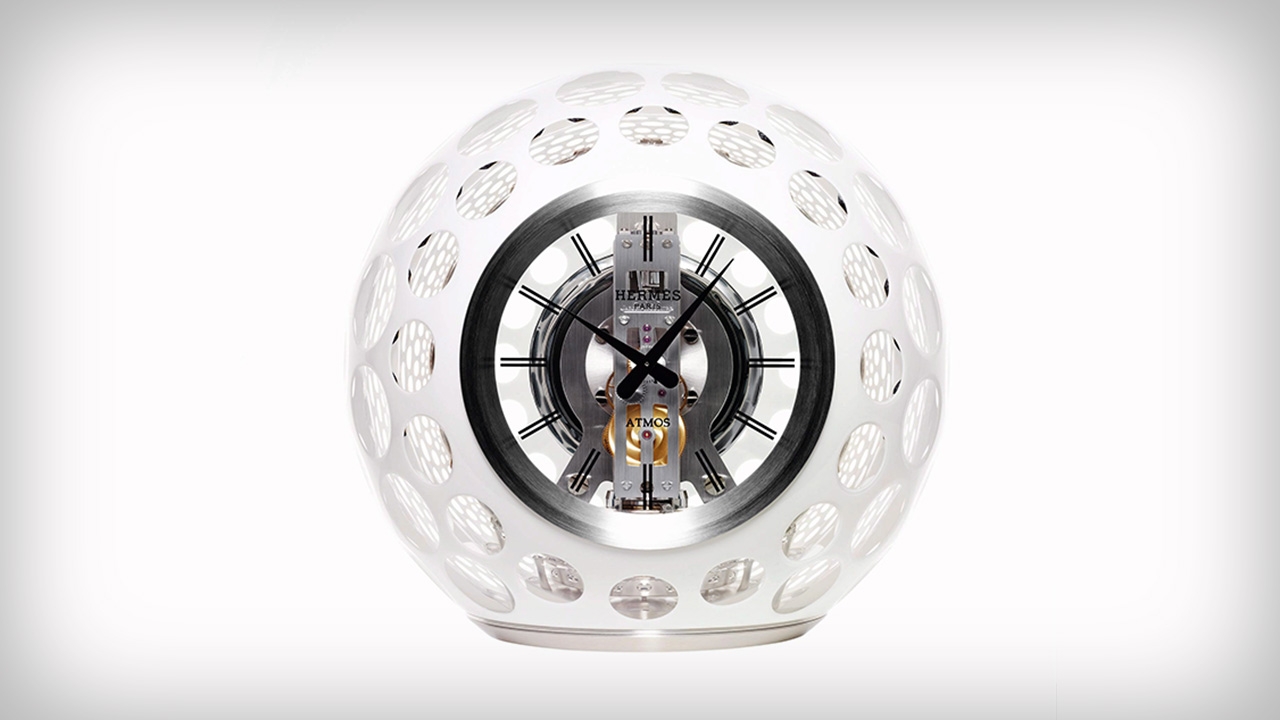 ขึ้นชื่อว่าเป็นแบรนด์เนมหรูระดับตำนานโลก สำหรับ Hermes เมื่อตั้งใจดีไซน์นาฬิกาตั้งโต๊ะสไตล์แอร์เมส จึงไม่ธรรมดาเลย โดยจับมือกับเจเกอร์ เลอคูลทร์ และเลอ คริสตัลเลอรีส์ เดอ แซงต์ หลุยส์ สร้างสรรค์คอลเลคชั่น “ATMOS Hermes clock” เพื่อให้เป็นชิ้นงานศิลปะบอกเวลาล้ำจินตนาการ ผลิตขึ้นอย่างพิถีพิถัน 176 เรือน โดยจุดเด่นอยู่ที่ความโปร่งแสงของคริสตัลสลับสีทึบของแก้ว ผสานความบอบบางของคริสตัลเข้ากับความแกร่งของเนื้อโลหะ ตัวเรือนทรงกลมดั่งลูกโลกทำจากคริสตัล ขนาดเส้นผ่าศูนย์กลางยาว 30 เซนติเมตร น้ำหนักราว 10