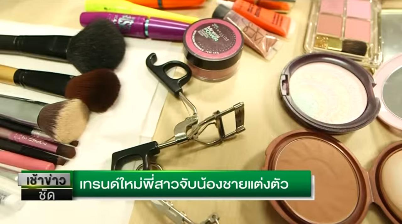 พี่สาวแต่งเติม วาดเขียนหน้าน้องชายอย่างสนุกสนาน ตั้งแต่เกลี่ยรองพื้น ทาแป้ง เขียนคิ้วทาตา กรีดอายไลน์เนอร์ ปัดแก้ม ติดขนตา ทาปาก แค่เนี้ย หน้าน้องชายสุดหล่อ ก็ออกมาเป็น…เกินบรรยาย