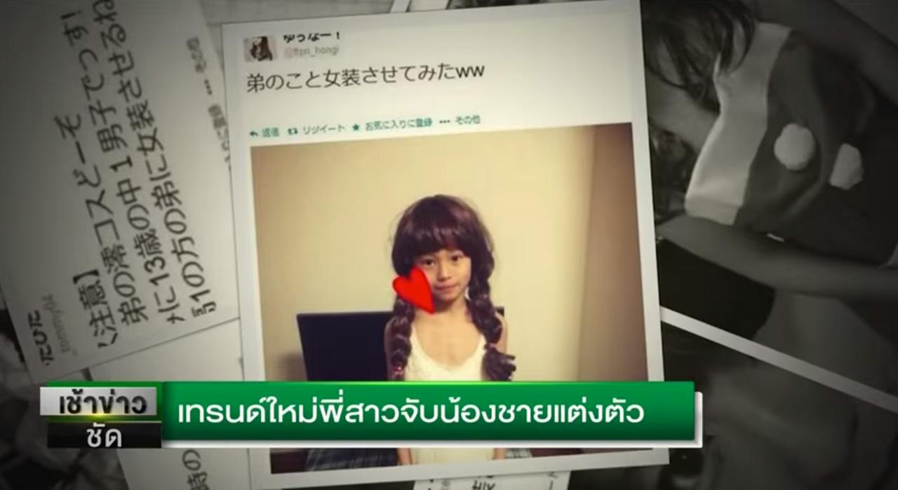 เมื่อไม่นานมานี้ เทรนด์ใหม่สุดแปลกมาแรงในโลกโซเชียลฯ ของสาวๆ ชาวเอเชีย และชาวญี่ปุ่น คือการจับน้องชายมาแต่งเป็นน้องสาวแล้วมาโพสต์ลงสังคมออนไลน์ ให้เพื่อนๆ กดไลค์...