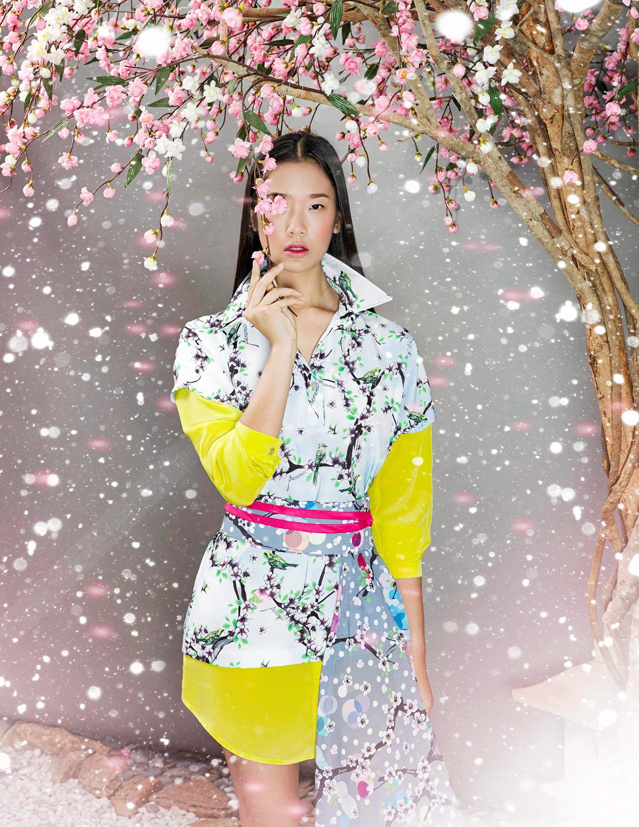 ด้าน “นก–ภาณุมาศ จิราธิวัฒน์” ดีไซเนอร์คนสวยผู้ก่อตั้งแบรนด์ Panumas นำภาพฝันของดอกซากุระบานสะพรั่งแข่งกัน, ภูเขาไฟฟูจิตั้งตระหง่านปกคลุมไปด้วยหิมะขาวโพลน, สาวอาทิตย์อุทัยในชุดกิโมโน และสีสันของขนมโมจิกับชาเขียว เป็นอินสไปเรชั่นออกแบบผ้าพิมพ์ลายใหม่ในคอลเลกชั่น “Cherry Blossom” ทั้งเรียบโก้และอ่อนหวานตามแบบฉบับคุณนายยุคใหม่