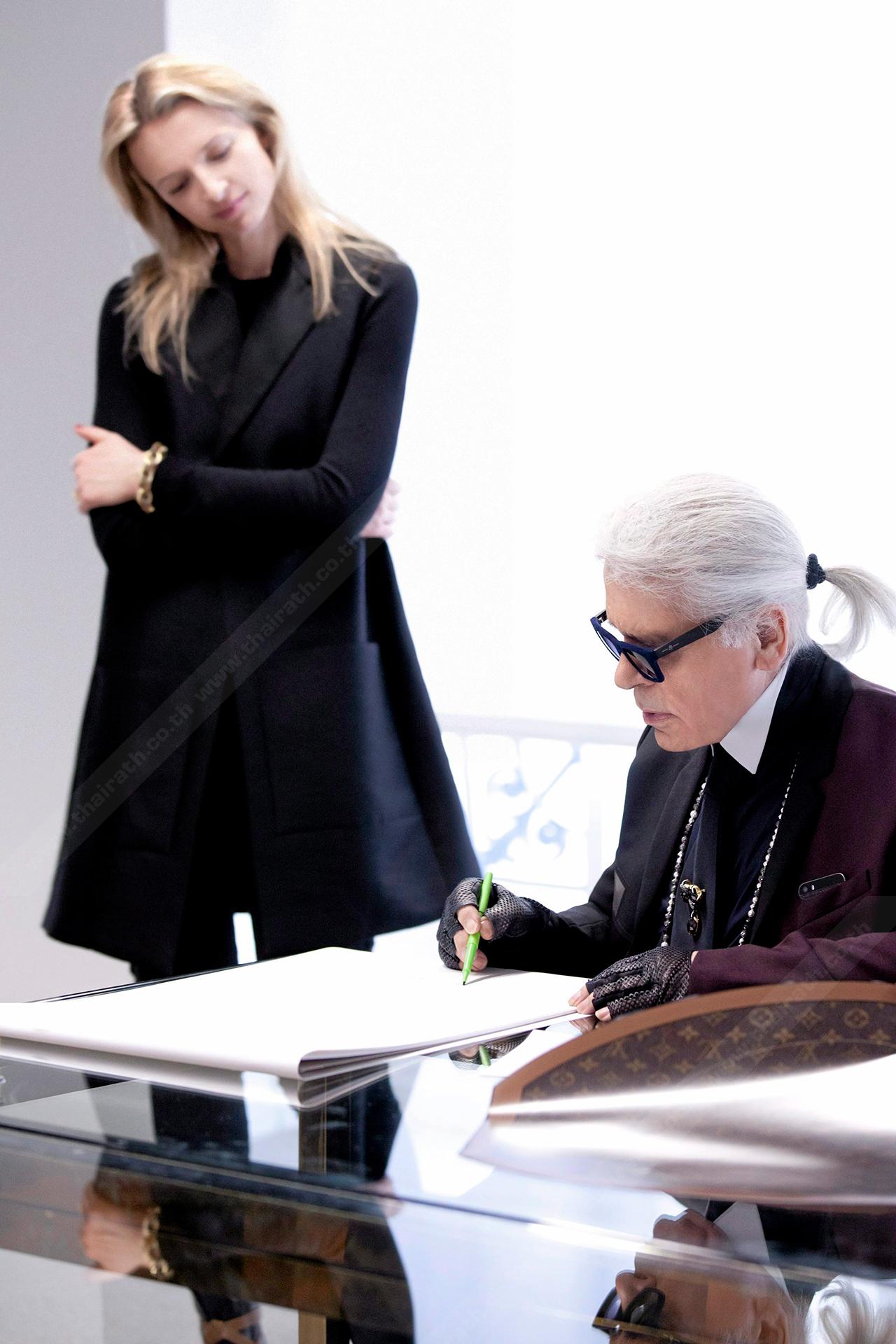 เราต้องการแสดงความเคารพต่อความคิดสร้างสรรค์ และจินตนาการของศิลปินทุกคน จึงให้อิสระพวกเขาอย่างเต็มที่ในการสร้างสรรค์ผลงาน กฎเกณฑ์เดียวที่เรากำหนดคือ การใช้ลวดลายโมโนแกรมเป็นแรงบันดาลใจ ภายใต้โปรเจกต์นี้ ทีมงานของเราต้องประชุมกับศิลปินเหล่านี้หลายสิบครั้ง กระทั่งมองเห็นจักรวาลทางความคิดของพวกเขา ซึ่งนั่นทำให้อิสระของการออกแบบขยายออกไปกว้างไกลอย่างไม่มีขอบเขต แต่ละคนก็มีวิธีทำงานที่ต่างกันไปอย่างสิ้นเชิง เช่น “คาร์ล ลาเกอร์เฟลด์” ถนัดภาพสเกตช์มือ ขณะที่ “แฟรงค์ เกห์รี่” มักจะมาพร้อมกับโมเดลกระดาษที่ใกล้เคียงของจริงมาก รายละเอียดเล็กๆน้อยๆและขั้นตอนการผลิตที่สลับซับซ้อน มีความสำคัญยิ่งต่อศิลปินเหล่านี้ ไม่ว่าจะเป็น เข็มหมุด, ซิป หรือแม้แต่การออกแบบตะเข็บด้านใน ล้วนแต่ถูกดีไซน์ขึ้นเฉพาะเจาะจงเพื่อรองรับไอเดียสร้างสรรค์ของพวกเขา