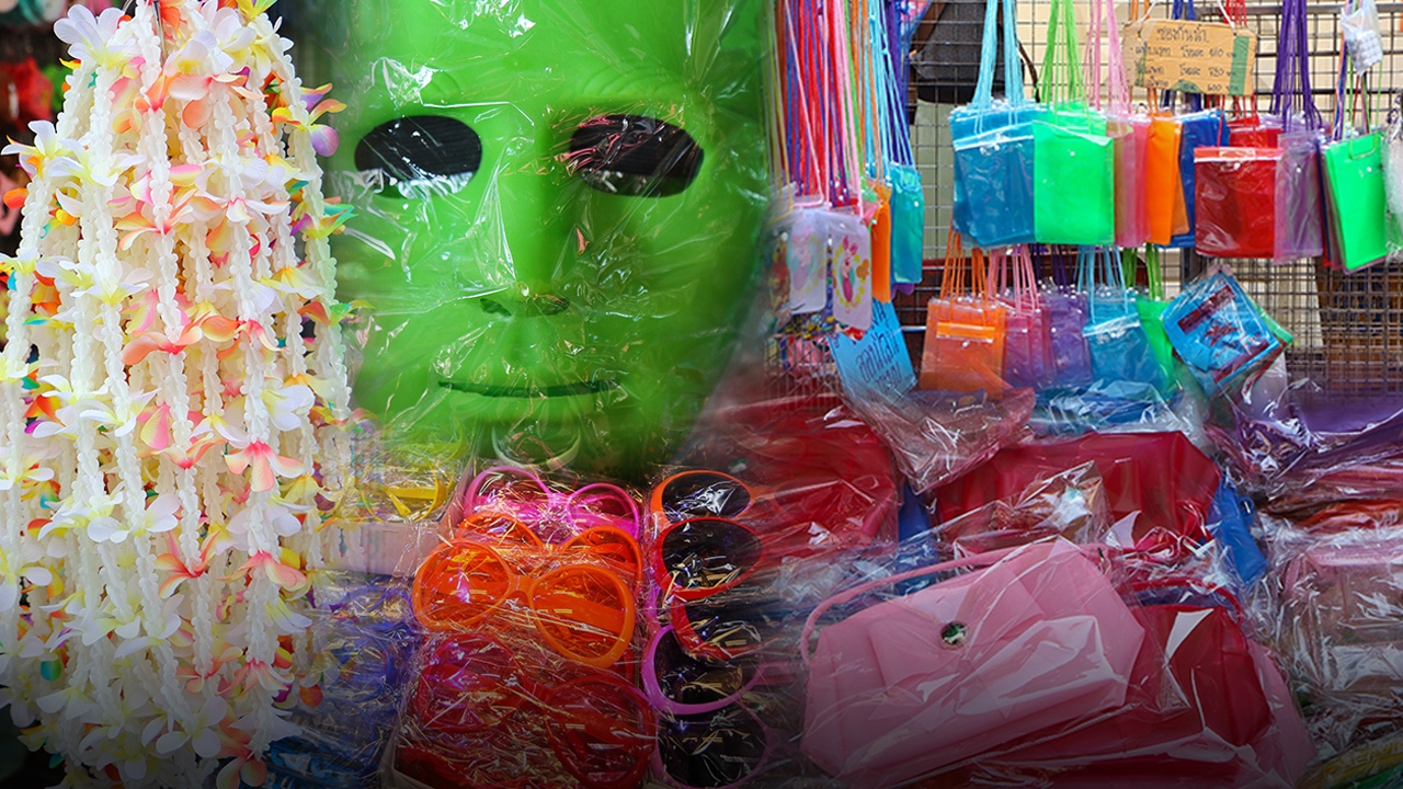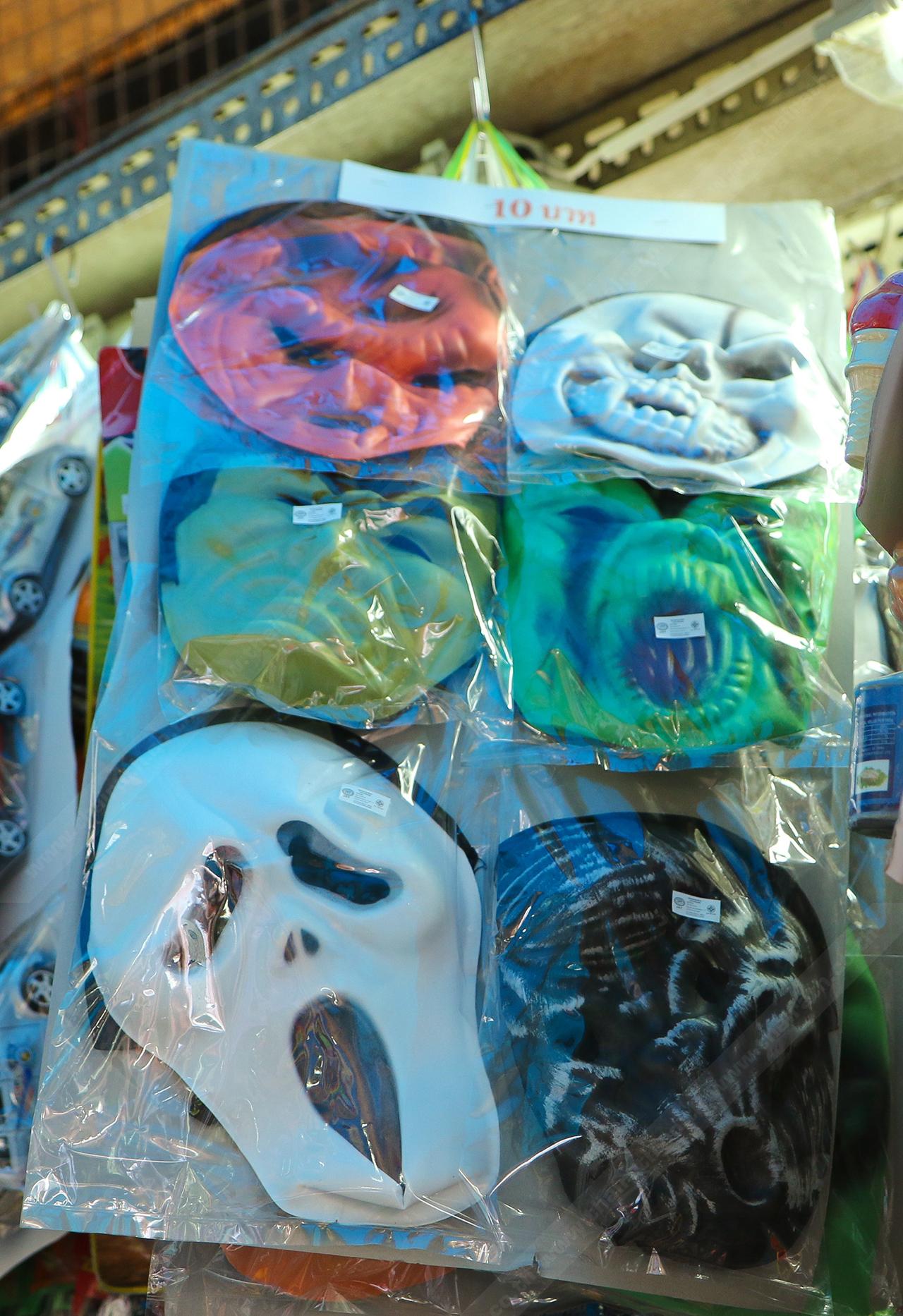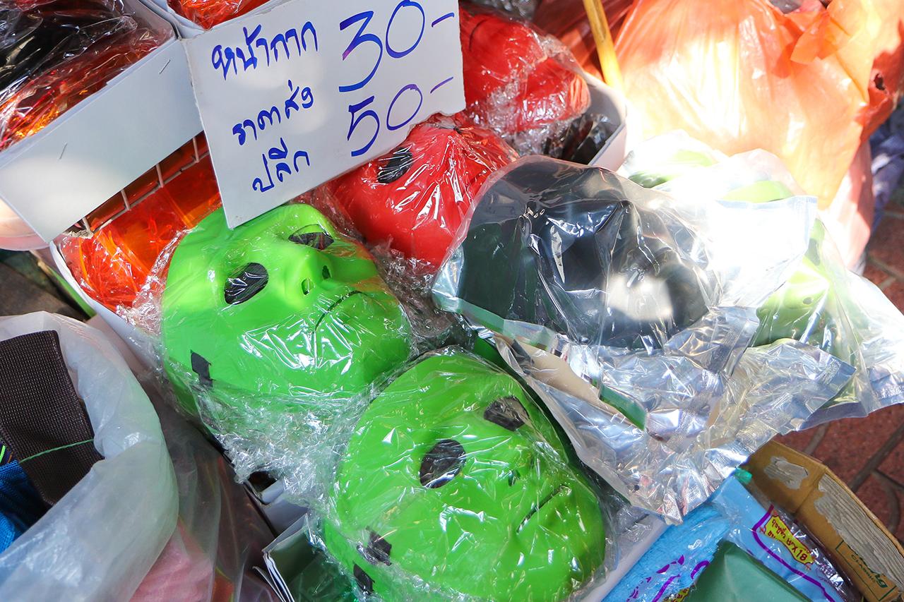 เป็นอีกไอเทมหนึ่ง ที่สร้างสีสันในวันสงกรานต์ได้เป็นอย่างดี มีทั้งหน้ากากผีและหน้ากากน่ารักๆ ถือว่าสร้างสีสันได้สุดๆ ใครเห็นก็ต้องเผยรอยยิ้มออกมา สนนราคาตั้งแต่ 10-50 บาท ใครอยากสร้างสีสันเป็นตัวเด่นในวันสงกรานต์ อย่าลืมไปหามาใส่กันด้วยนะ