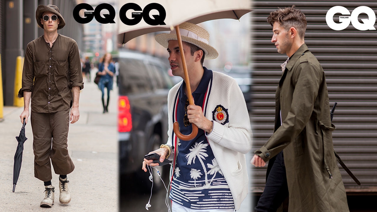 เอาจริงๆ ผู้ชายไทยไม่ใส่เสื้อกันฝนอยู่แล้ว อาจเปลี่ยนเป็นพวกแจ็กเก็ตเท่ๆ ที่กันน้ำ หรือสูทเบลเซอร์แบบไม่เป็นทางการมากนัก ก็ช่วยป้องกันคุณจากฝนได้ แถมมีสไตล์อีกต่างหาก