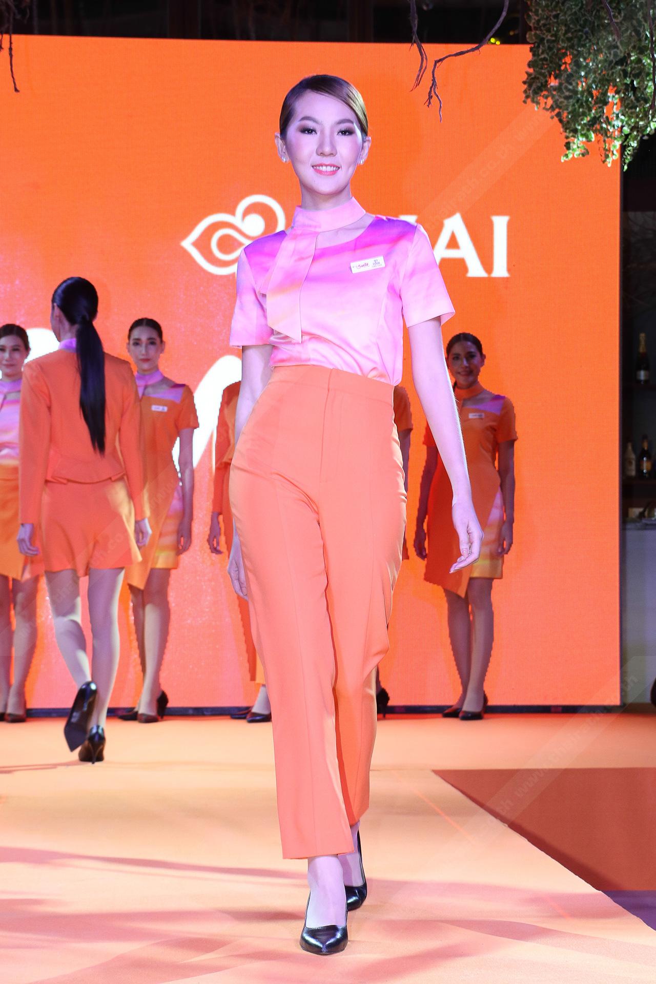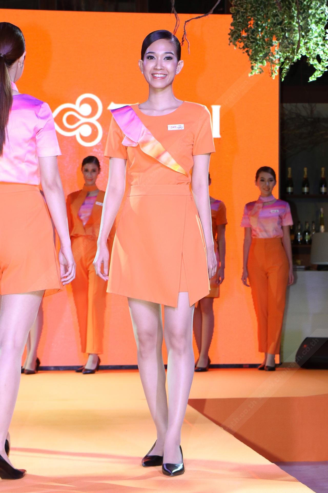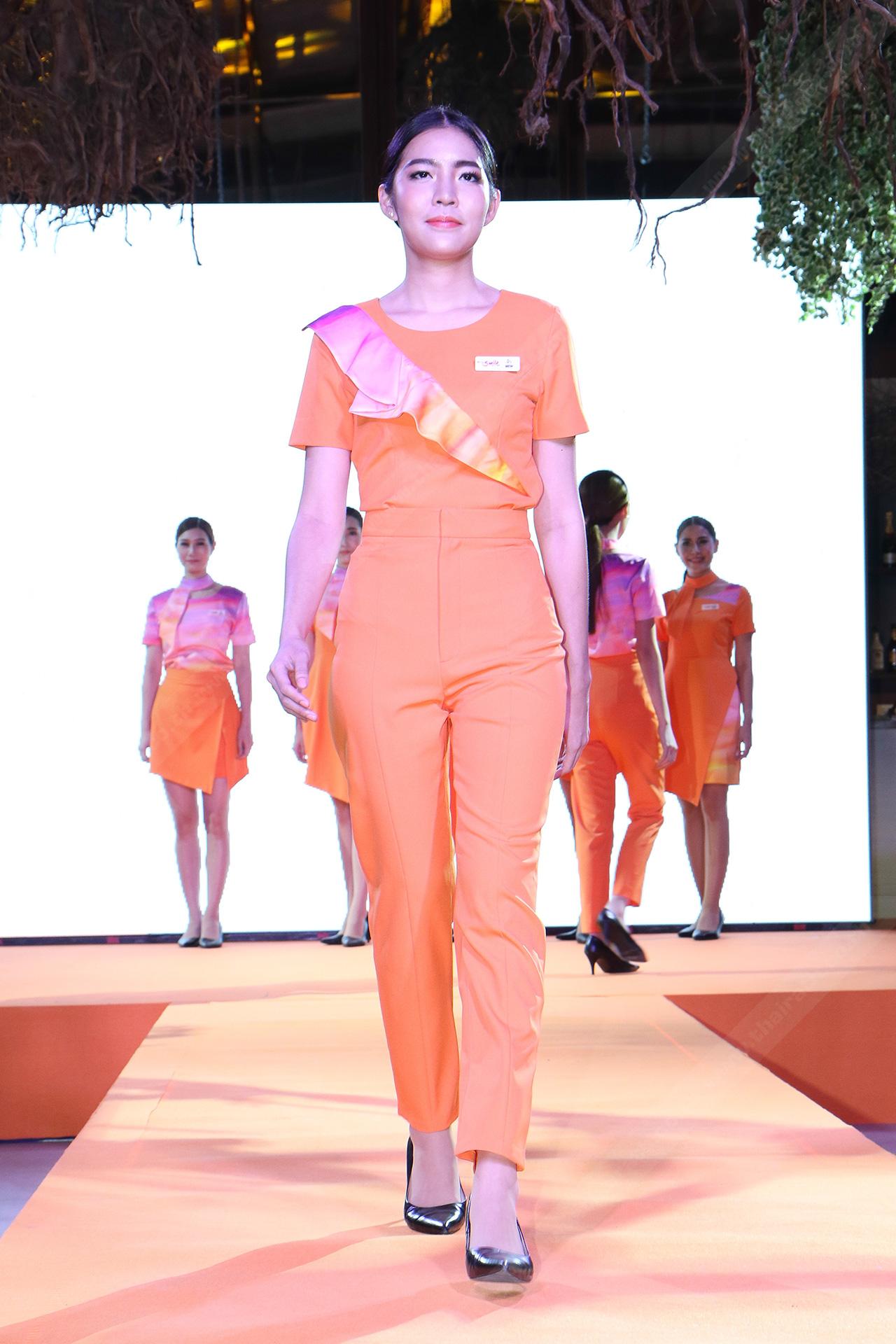สำหรับคอลเลกชั่นชุดพนักงานต้อนรับบนเครื่องบิน (Cabin Crews) ครั้งนี้ มิลินบอกว่า เป็นการออกแบบโดยได้แรงบันดาลใจมาจากแสงพระอาทิตย์ยามเย็น นำมาผสมผสานกับอัตลักษณ์ความเป็นไทยได้อย่างลงตัว โดยแบรนด์ MILIN เป็นผู้ออกแบบและผลิตยูนิฟอร์มทั้ง 8 ชุด ในคอลเลกชั่นดังกล่าว