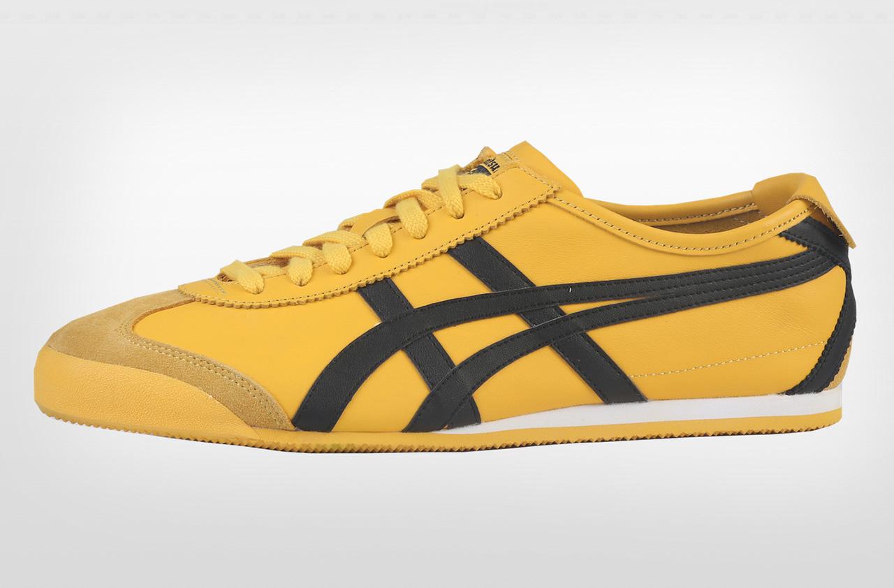 Onitsuka Tiger รุ่น Colorado 85 แรงบันดาลใจของรองเท้ารุ่นนี้มาจากภาพยนตร์เรื่องสุดท้ายที่บรู๊ซ ลีนำแสดง โดยใช้สีเหลืองและสีดำเป็นสีหลักบนรองเท้ารุ่นพิเศษนี้ สีเหลืองส่วนของรองเท้าได้มาจากหนังนูบัคโดยพาดลายของ Tiger Stripes สีดำด้านข้างรองเท้า ซึ่งการนำสีเหลืองดำมาใช้ถือเป็นการให้เกียรติต่อชุดที่บรู๊ซลีใส่เสมอๆ โดยยังคงมีสัญลักษณ์ของนักกังฟูบนหลังรองเท้าทั้งสองข้าง และอีกทั้งสัญลักษณ์ครบรอบ 75 ปีด้านในพื้นรองเท้าอีกด้วย.