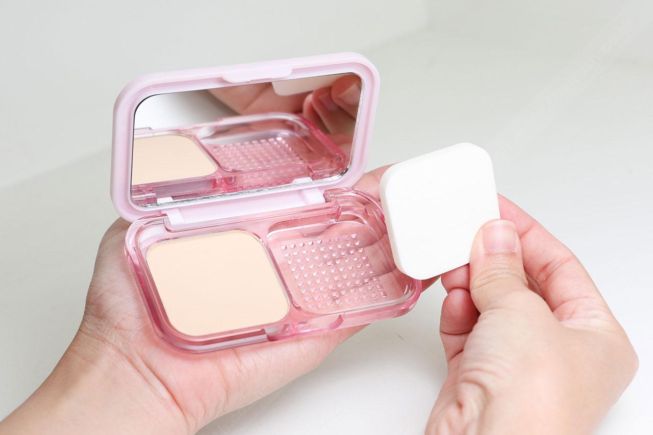 แต่ที่สำคัญ คือ ไม่อุดตันรูขุมขน ไม่เป็นสิวอุดตัน ทำให้หน้าเนียน ไม่มันวาว ได้ผิวแมทท์ดั่งใจ แต่ถ้าใช้กับแปรงจะใช้ยาก ส่วนตัวเราชอบใช้กับพัฟฟ์ที่ให้มาในตลับ ตบได้เนียนกว่า หรือไม่ก็เคาะออกมาใส่ฝ่ามือแล้วค่อยๆ เติมบนผิวหน้าก็ได้ เหมือนเวลาทาแป้งเด็กทั่วไป ส่วนแพ็กเกจเป็นตลับฝาหมุนกลมๆ พกสะดวก