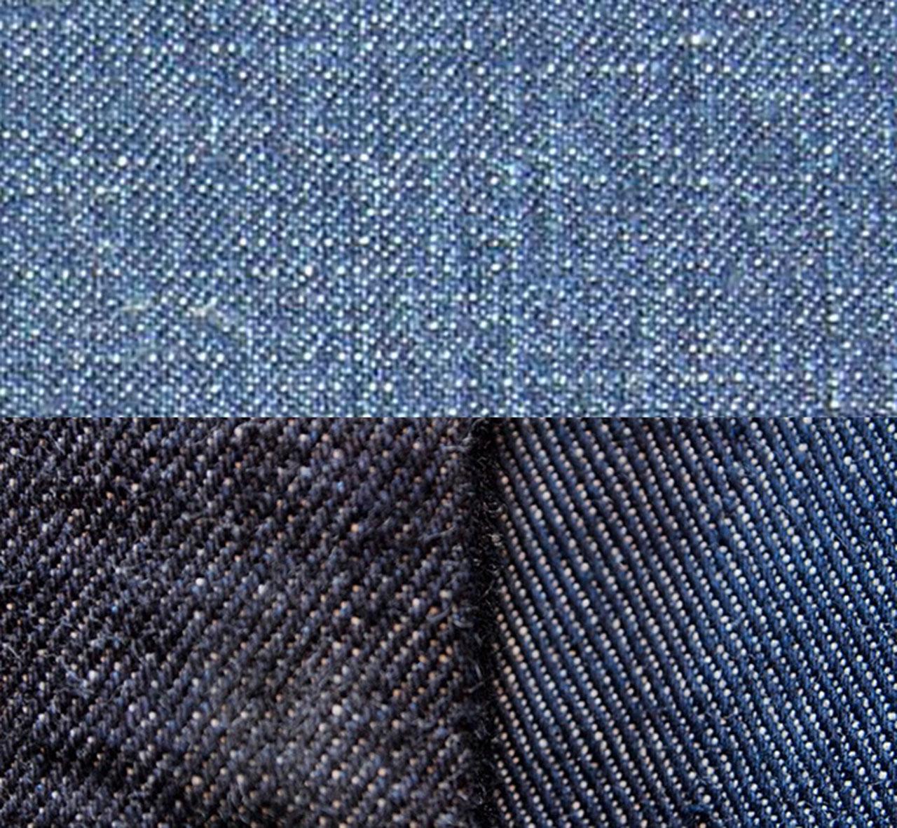จะเห็นว่าด้านในของกางเกงยีนส์จะเป็นสีขาว ส่วนด้านนอกจะเป็นสีของเดนิม ที่เป็นเช่นนี้เพราะเป็นผลมาจากเทคนิคในการถักทอที่เรียกว่า Twill หรือการทอผ้าแบบตัดสลับกันนั่นเอง การทอผืนผ้ายีนส์นั้นแบ่งได้เป็น 3 แบบ คือ Right Hand Twill (เฉียงขวา), Left Hand Twill (เฉียงซ้าย) และ Broken Twill (สลับไปสลับมา) การทอด้วยเทคนิคตัดสลับกันนี้ทำให้ยีนส์มีความคงทน ไม่เกิดรอยย่น ทั้งยังป้องกันความชื้น ความหนาว และความสกปรกได้ดีอีกด้วย
