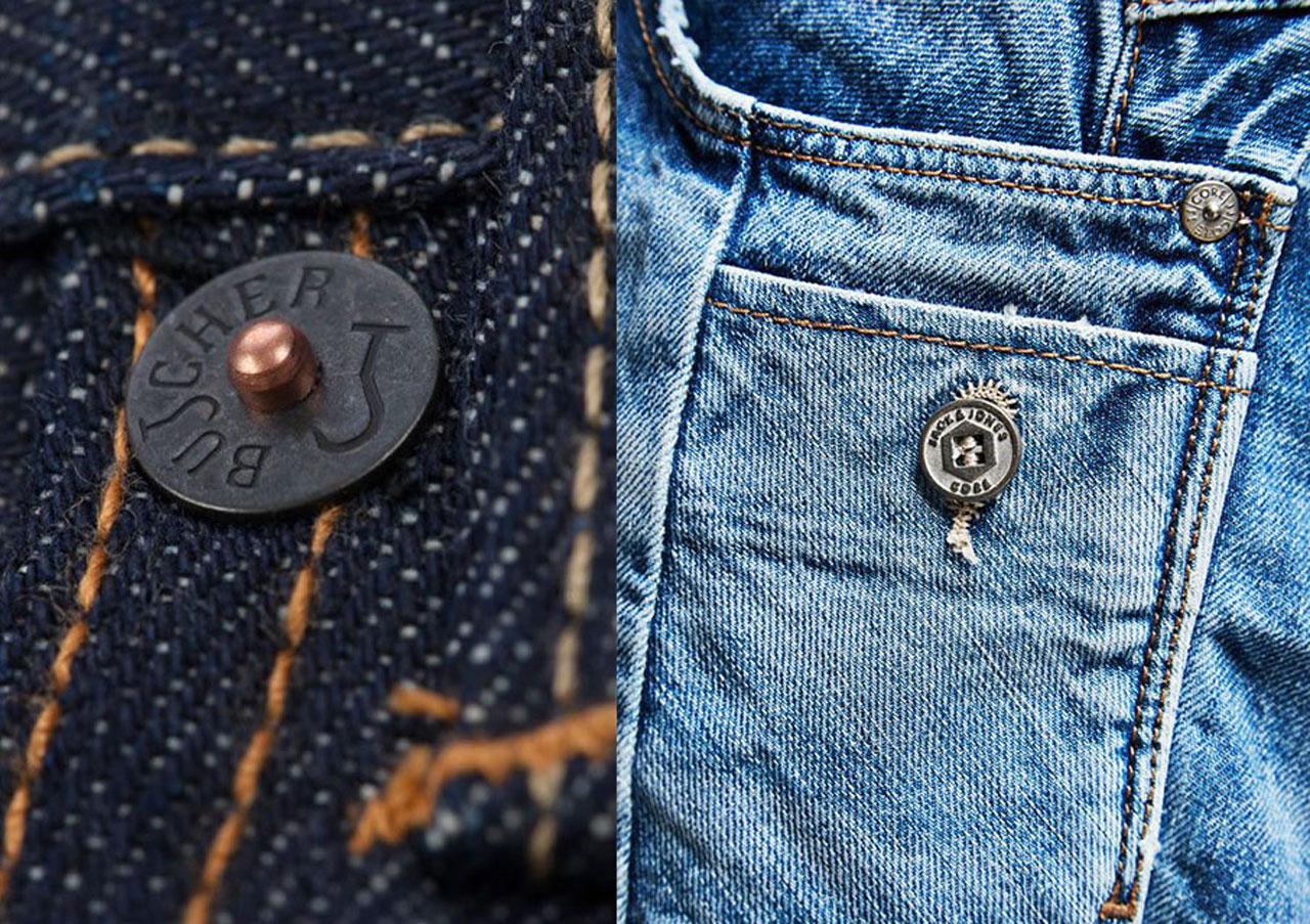 การทำกางเกงยีนส์มีสิ่งหนึ่งที่แตกต่างจากการทำกางเกงทั่วไป คือจะมีหมุดโลหะ หรือ Rivets ตอกอยู่ที่กางเกงด้วย การตอกหมุดโลหะถูกคิดค้นและจดสิทธิบัตรในปี 1873 โดย Jacob Davis และ Levi Strauss ผู้ก่อตั้งกางเกงยีนส์ยี่ห้อลีวายส์ มีจุดประสงค์เพื่อเพิ่มประสิทธิภาพในการรับน้ำหนักในจุดรวมตะเข็บ โดยเฉพาะบริเวณกระเป๋าหลังและเป้า ซึ่งมักจะขาดบ่อยจากการใช้งานในยุคนั้น และเพราะมีหมุดโลหะนี้เองที่ทำให้กางเกงยีนส์เป็นกางเกงที่ทนทานต่อการใช้งานอย่างมาก