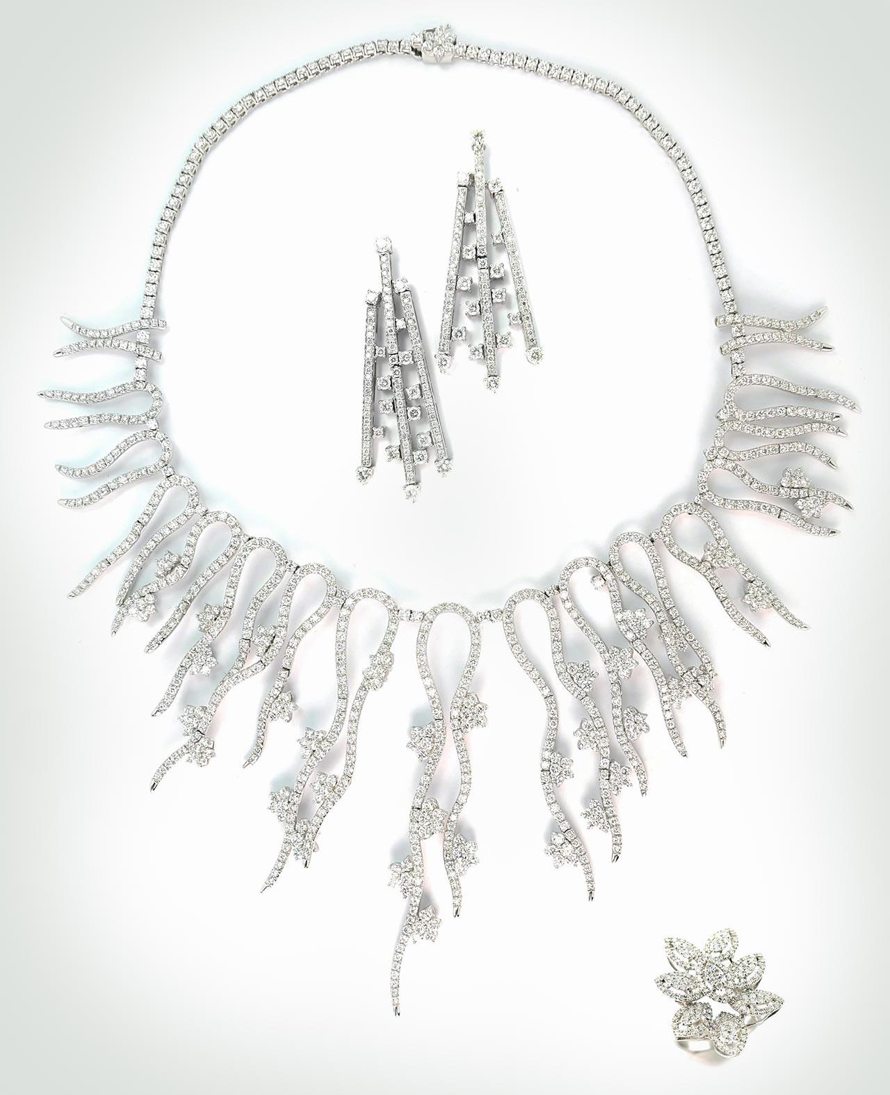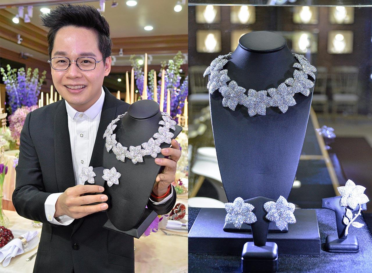 งานนี้สร้างความกระชุ่มกระชวยให้กับลูกค้าเวรี่วีไอพีกระเป๋าหนัก ได้แต่งสวย และห่มเพชรแพรวพราวระยิบระยับ โดยเฉพาะขาใหญ่จัดหนักจัดเต็มต้องยกให้ “จรินทร์ สุมานนท์” ที่ขนชุดเครื่องประดับเพชรบลูโทพาสเม็ดสีฟ้าสดใสขนาดเท่าลูกอมโปะมาเต็มอัตราศึก สะกดทุกสายตา ตั้งแต่ต่างหู สร้อยคอ และแหวน แถมยังสั่งจองเครื่องประดับชิ้นไฮไลต์ของคอลเลกชั่น “ลามูร์ โมเมนท์” คือเซต “เทียร่า” ประดับเพชรน้ำงาม 2,919 เม็ด น้ำหนักรวม 142 กะรัต ใช้นวัตกรรมการผลิต แบบ 3 in 1 สามารถเปลี่ยน “เทียร่า” เป็น “สร้อยคอ” และ “เฮดแบนด์” (ที่คาดผม) นอกจากนี้สร้อยคอ ยังสามารถถอดเป็นเข็มกลัดได้อีก 7 ชิ้น และยังมีต่างหู พร้อมเข็มกลัดเข้าเซตกัน สามารถปรับเปลี่ยนให้เข้ากับไลฟ์สไตล์ในแต่ละวัน รวมมูลค่ากว่า 20 ล้านบาท และมีเพียงชิ้นเดียวในโลก....เจ๊คงอุทานในใจก่อนเซ็นเช็คว่าคุ้มจริงๆ!!