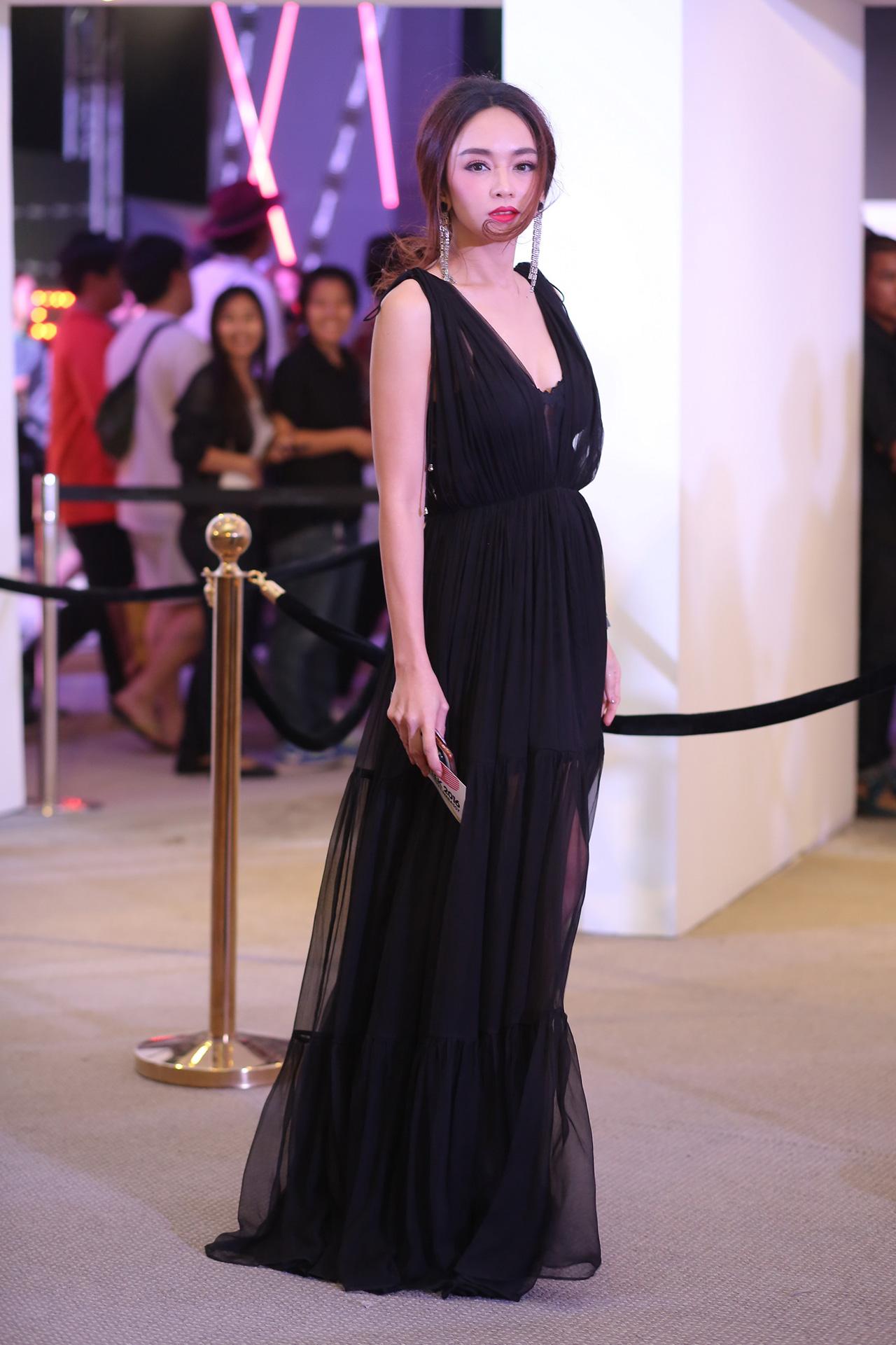 ‘แอฟ-ทักษอร เตชะณรงค์' สวยเรียบหรูดูดีกับชุดสีดำเปิดไหล่ มีความเก๋ตรงพู่ขนนกรอบๆ หน้าอก เซตผมแบบเรียบๆ มัดไว้ข้างหลัง แต่งหน้ามาได้อย่างลงตัว บอกเลยว่าเธอสวยหยาดเยิ้ม ทั้งกิริยา มารยาท หน้าตาและชุด