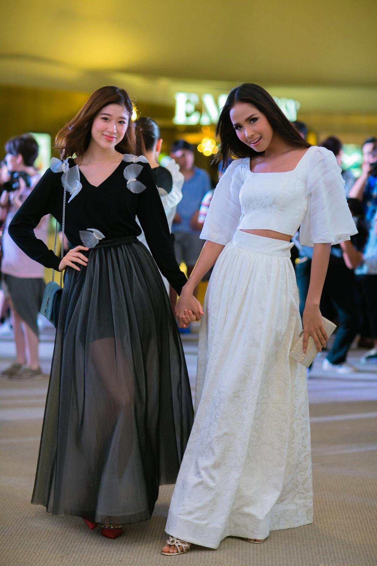 จริญญา ศิริมงคลสกุล, นนธวรรณ ฌรรวนธร 2 สาวต่างสไตล์แต่สวยอย่างลงตัวด้วยชุดขาวดำ โดดเด่นตรงกระโปรงยาวถึงพื้น