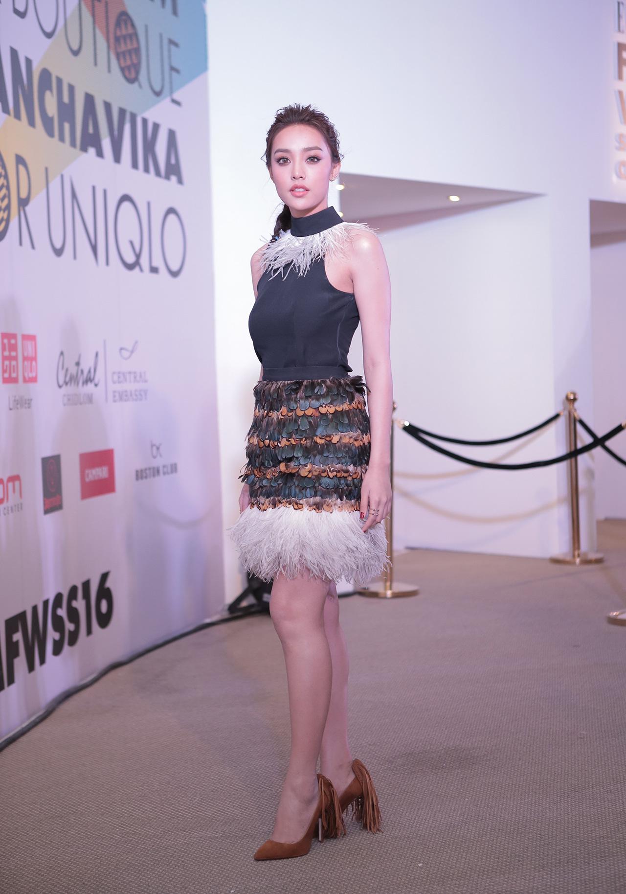 ‘น้ำตาล-พิจักขณา วงศารัตนศิลป์’ สำหรับสาวคนนี้เธอมาด้วยชุดสีดำที่มีความพลิ้วไหวของขนนกเกือบทั้งตัว ชุดนี้ดูมีสีสันและมีความน่าสนอยู่ไม่น้อย บอกเลยว่าสาวน้ำตาลสามารถดึงดูดให้คนมองเธอได้อย่างแน่นอน ยังไม่พอเธอยังเพิ่มความเก๋ตรงรองเท้าสีน้ำตาลที่มีพู่อีกด้วย